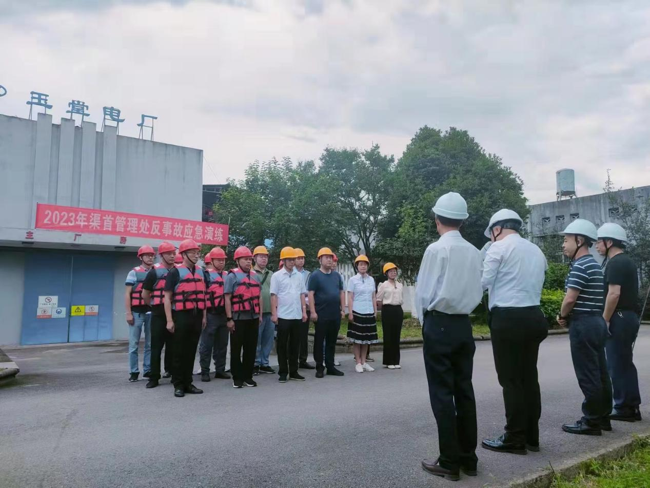 为推动以“人人讲安全,个个会应急”为主题的“安全生产月”活动走深走实,切实提高安全生产应急应变能力,6月8日上午,都江堰水利发展中心渠首管理处在玉堂电厂开展了反事故应急演练,中心党委委员、渠首管理处处长赖剑担任了此次演练总指挥,中心党委委员、工会主席朱是率中心安监处、综经处一行到现场进行指导。