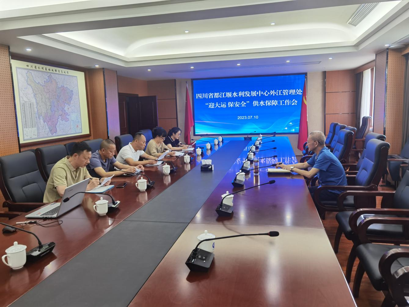 为筑牢成都大运会期间外江灌区供水安全防线,着力提升灌区供水保障和安全应急处置能力,7月10日,外江管理处组织召开“迎大运 保安全”供水保障工作会,会议由外江管理处副处长雷雨来主持。