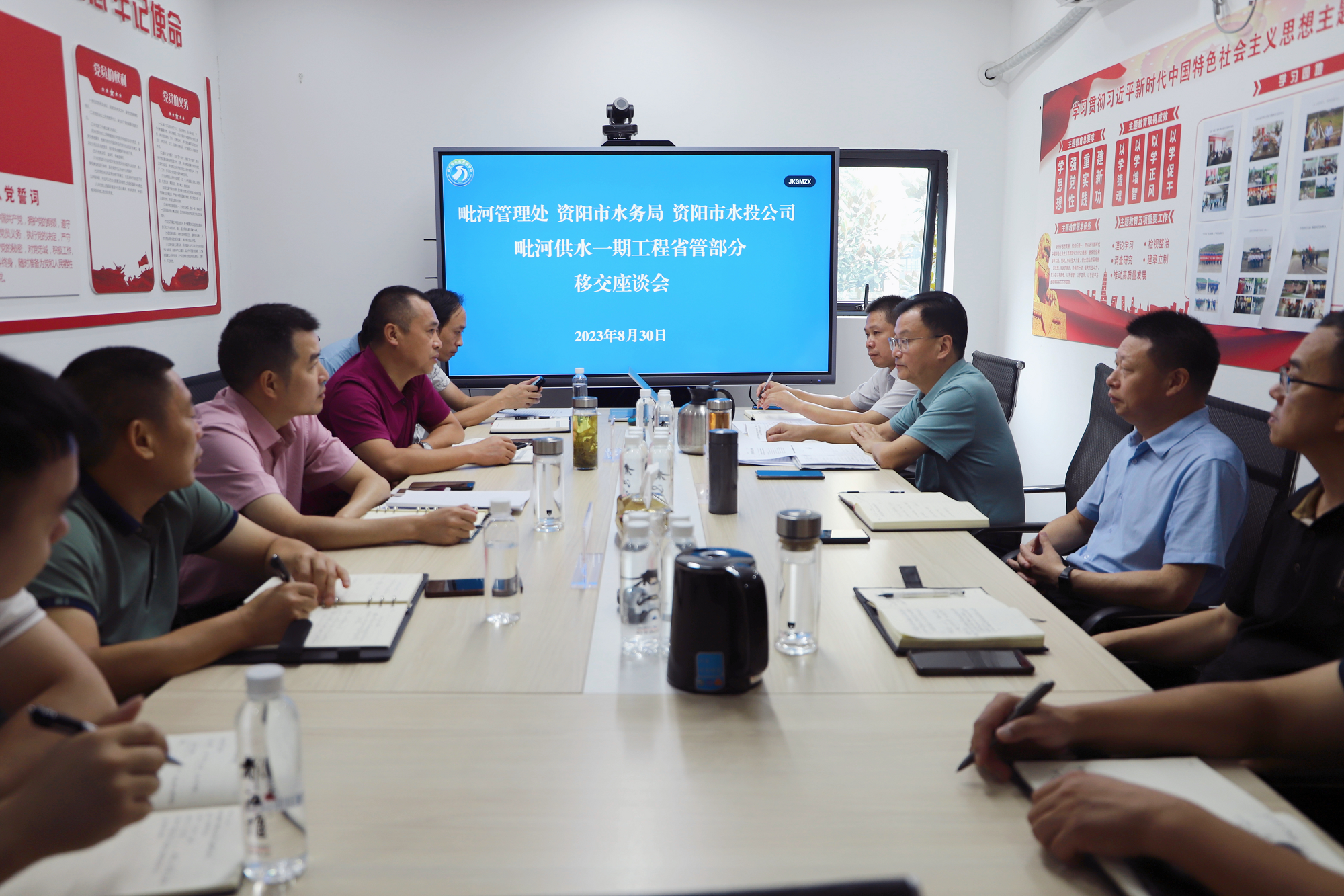 为贯彻落实省都江堰水利发展中心关于毗河供水一期工程相关会议精神,推动新建灌区工程高效运转,8月30日,毗河管理处与资阳市水务局、资阳市水投公司在机关会议室组织召开毗河供水一期工程省管部分移交座谈会。