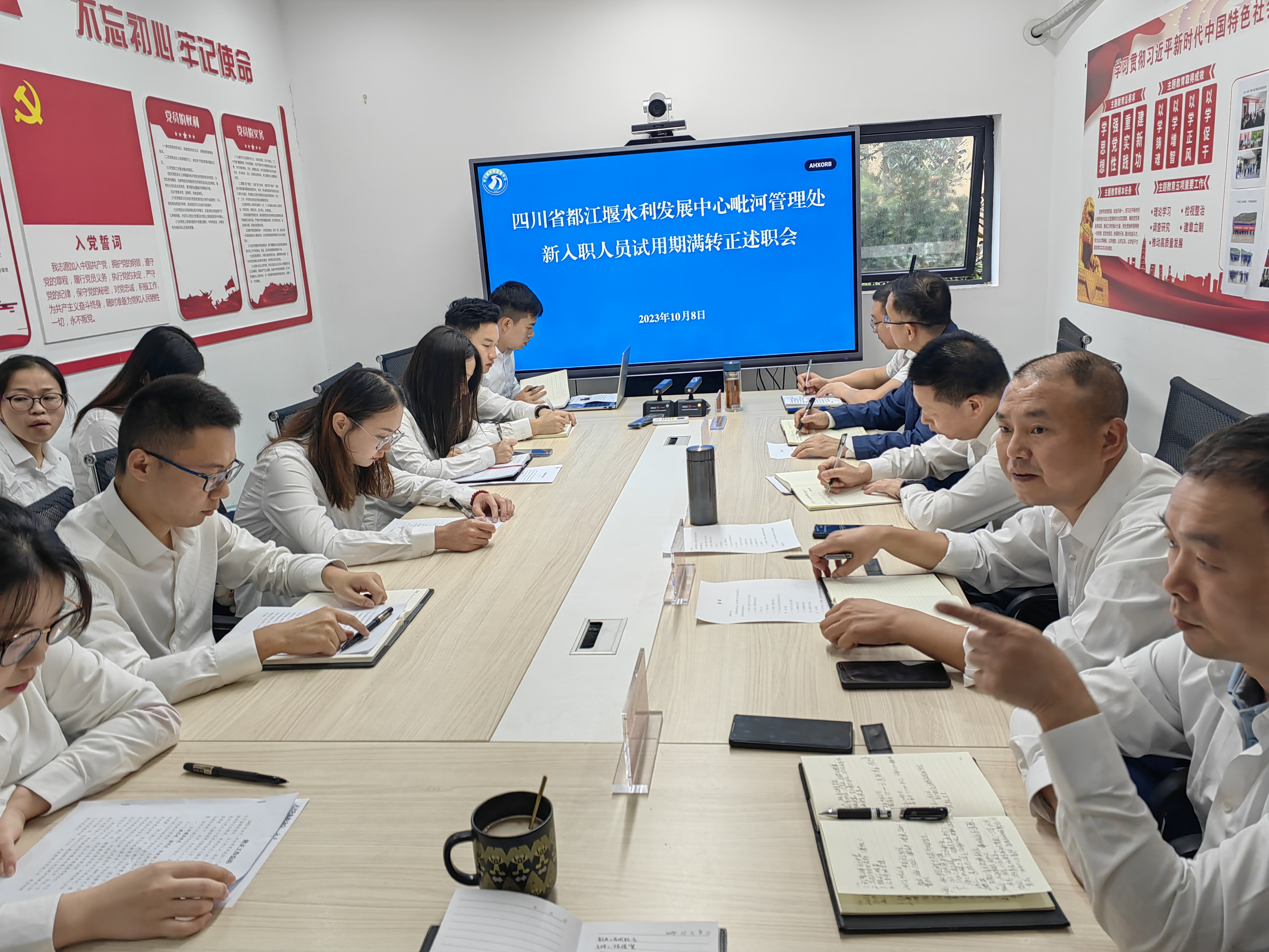 为综合了解2023年6月新入职人员试用期间现实表现情况,做好新录用人员的试用期满考核、转正定级等工作,10月8日上午,四川省都江堰水利发展中心毗河管理处在机关会议室召开了新入职人员试用期满转正述职会。