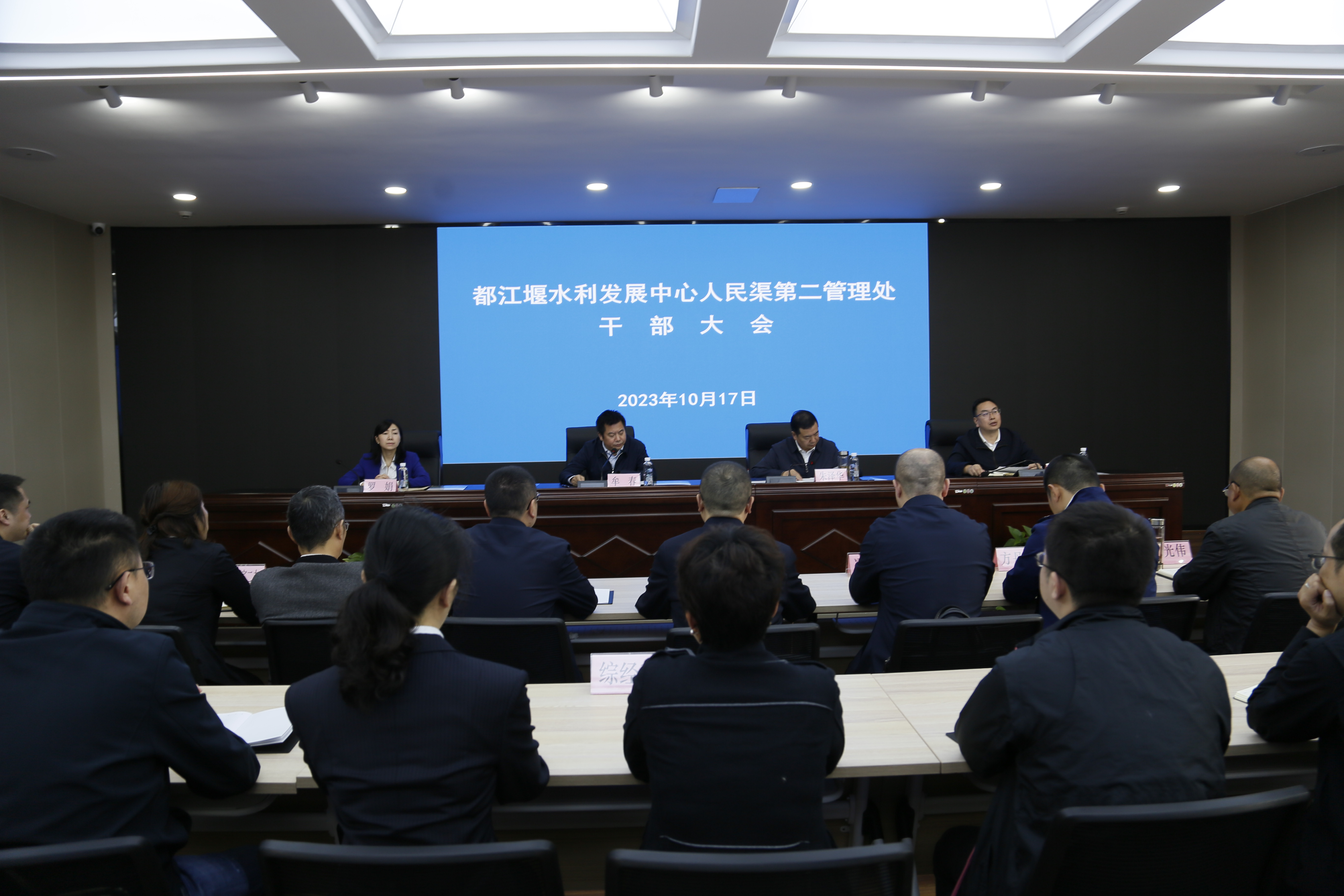 10月17日,都江堰水利发展中心人民渠第二管理处召开干部大会。会议由都江堰水利发展中心党委书记、主任朱泽华主持。厅人事处处长牟春出席会议并讲话。人民渠第二管理处在家处领导、中层干部、机关部分职工代表参加会议。