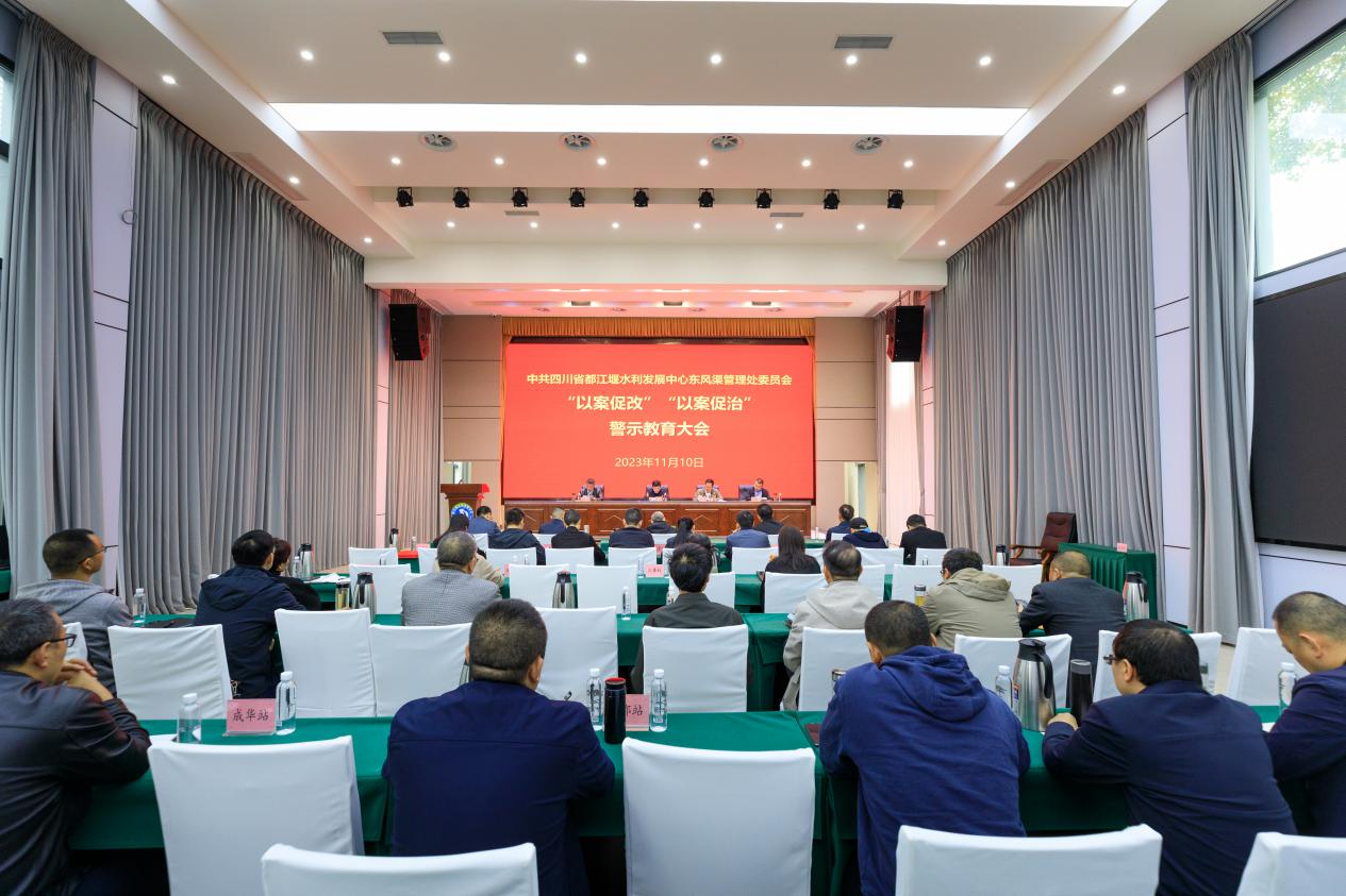 11月10日,东风渠管理处召开“以案促改、以案促治”警示教育大会,传达都江堰水利发展中心警示教育大会精神,安排部署东风渠管理处党风廉政建设工作。党委书记、处长杨斌出席会议并讲话。