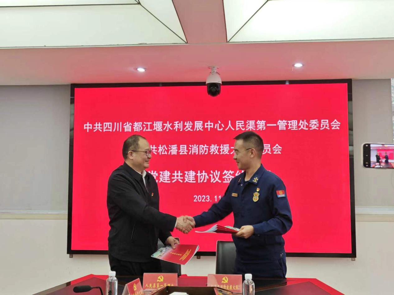为持续巩固拓展主题教育成效,充分发挥党建引领作用,近日,人民渠第一管理处党委和松潘县消防救援大队党委举行了党建共建启动仪式,签订了党建共建协议。