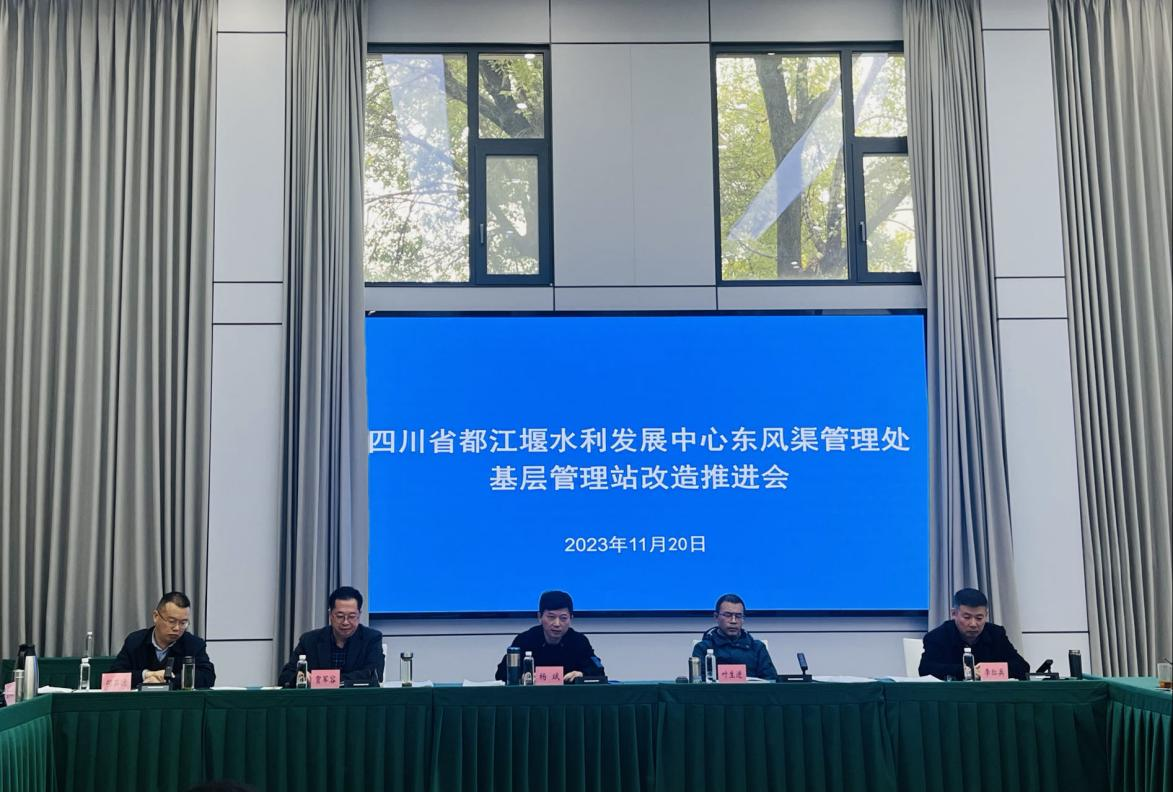 2023年11月20日,东风渠管理处党委书记、处长杨斌组织召开基层管理站改造推进会,研究基层管理站改造思路和初步方案。副处长叶生进、贾军容、胡其德,都江堰水利发展中心纪委专职副书记、纪检监察一室主任李红兵出席会议。