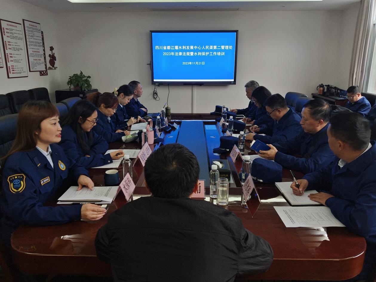 为推进人民渠第二管理处水利法治建设,不断提升水利保护工作水平,更好地服务灌区水利高质量发展,11月21日,人民渠第二管理处组织开展2023年法律法规暨水利保护工作培训。副处长张涌作培训动员讲话,全处水利保护工作人员参训。