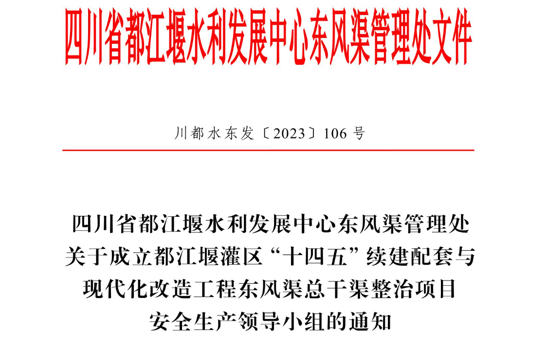 当前正值都江堰灌区“十四五”续建配套与现代化改造工程东风渠总干渠整治项目(以下简称“十四五”东风渠总干渠整治项目)施工建设关键时期,也是各类生产安全事故易发多发期。为进一步督促项目参建各方抓好水利工程建设安全生产工作,东风渠管理处时刻紧绷安全生产之弦,坚决筑牢安全生产防线,多措并举确保项目施工建设安全有序。