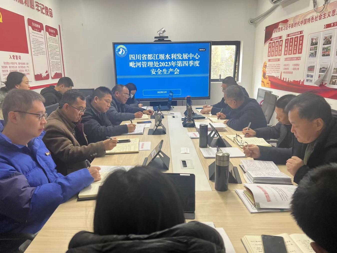 12月18日,四川省都江堰水利发展中心毗河管理处召开第四季度安全生产领导小组会议,深入贯彻落实习近平总书记关于安全生产重要论述和重要指示批示精神,传达贯彻水利厅、都江堰水利发展中心关于岁末年初安全生产和冬春消防安全防范工作要求,分析管理处当前安全生产形势,安排部署安全防范工作。处党支部书记、处长陈德宽主持会议。