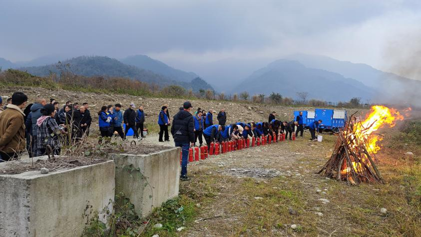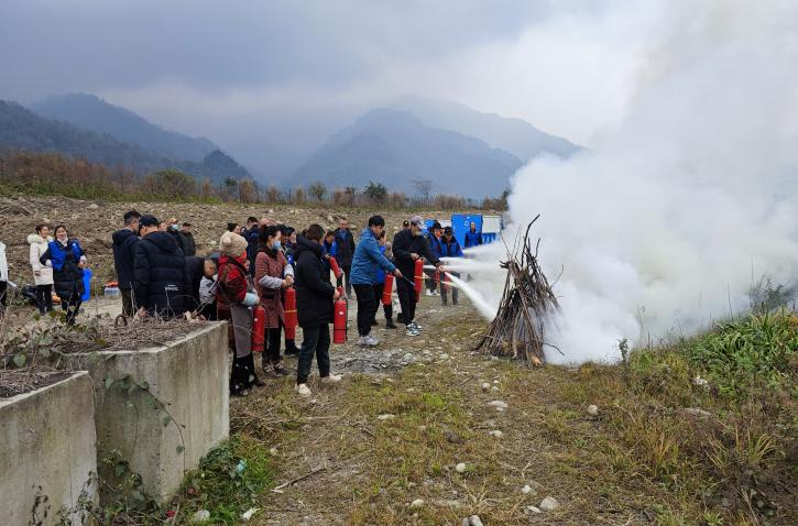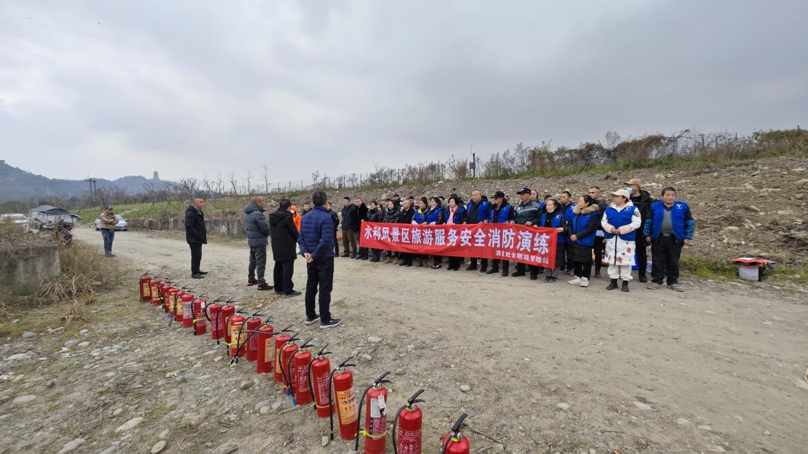 为切实加强水利风景区日常安全管理,提高员工对突发事件的应对能力,特别是“三位一体”的紧急处理水平,圣源旅游公司于2024年1月5日下午,在水文站后方的空旷场地,成功组织了一场综合性的旅游服务安全消防知识学习培训和消防安全模拟实战演练。