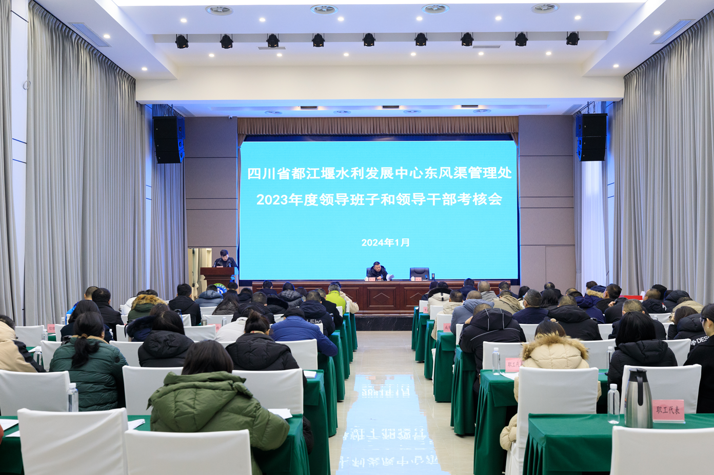 1月30日,东风渠管理处召开2023年度领导班子和领导干部考核会,都发中心党委委员、副主任、考核组带队领导吴鉴出席会议并讲话,其他考核组成员,东风渠管理处处级领导、正科级干部、组长、工青妇代表、离退休职工代表共计69人参加会议,会议由党委书记、处长杨斌主持。