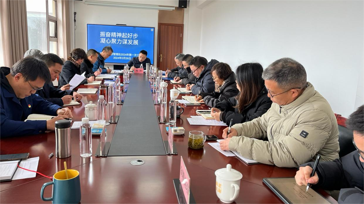 一年春作首,万事行为先。为进一步提振士气、凝心聚力,奋力推动新阶段都江堰灌区高质量发展谋篇布局,2月26日,都江堰渠首管理处召开2024年第一次工作会议,传达学习2024年水利厅、都发中心第一次机关职工大会精神,安排部署2024年度重点工作,处领导班子及全体中层干部参加会议。会议由党委书记、处长杨桓主持。