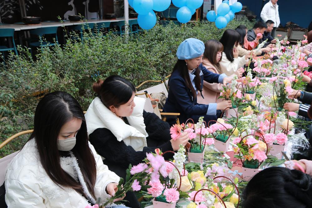 插花拾趣绽芳华。巾帼们发挥想象,用灵巧的双手认真修剪枝叶、搭配色彩、设计造型,享受着亲手创作的乐趣和插花艺术带来的美好体验,经过不断的尝试和实践,一束束错落有致、生机盎然、创意十足的插花作品展现在大家眼前,手捧鲜花,每个人脸上洋溢着满满的幸福感和成就感。