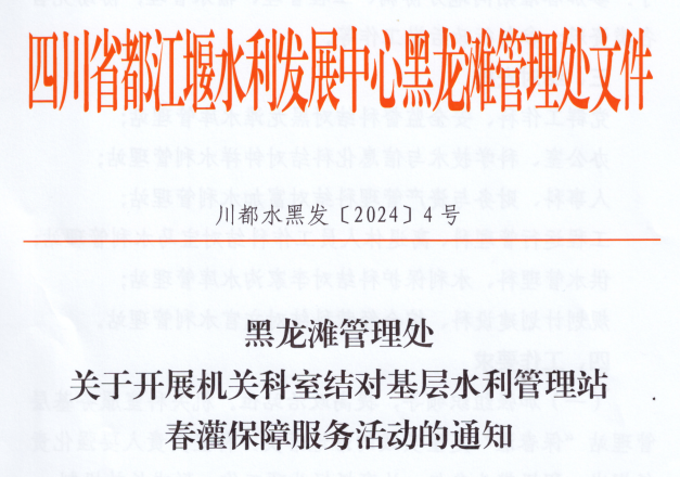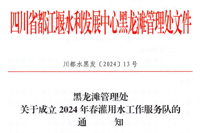 精准“调”,完善用水结构。为缓解今年用水难的问题,黑龙滩管理处提前谋划,及时向上级部门汇报黑龙滩灌区蓄水情况及用水计划,主动协调都发中心供水处与上游东风渠管理处,积极争取来水。同时,与仁寿县水利局、都江堰井研灌区管理处召开用水工作座谈会,共商输水调水事宜,确保用水计划科学顺利实施。