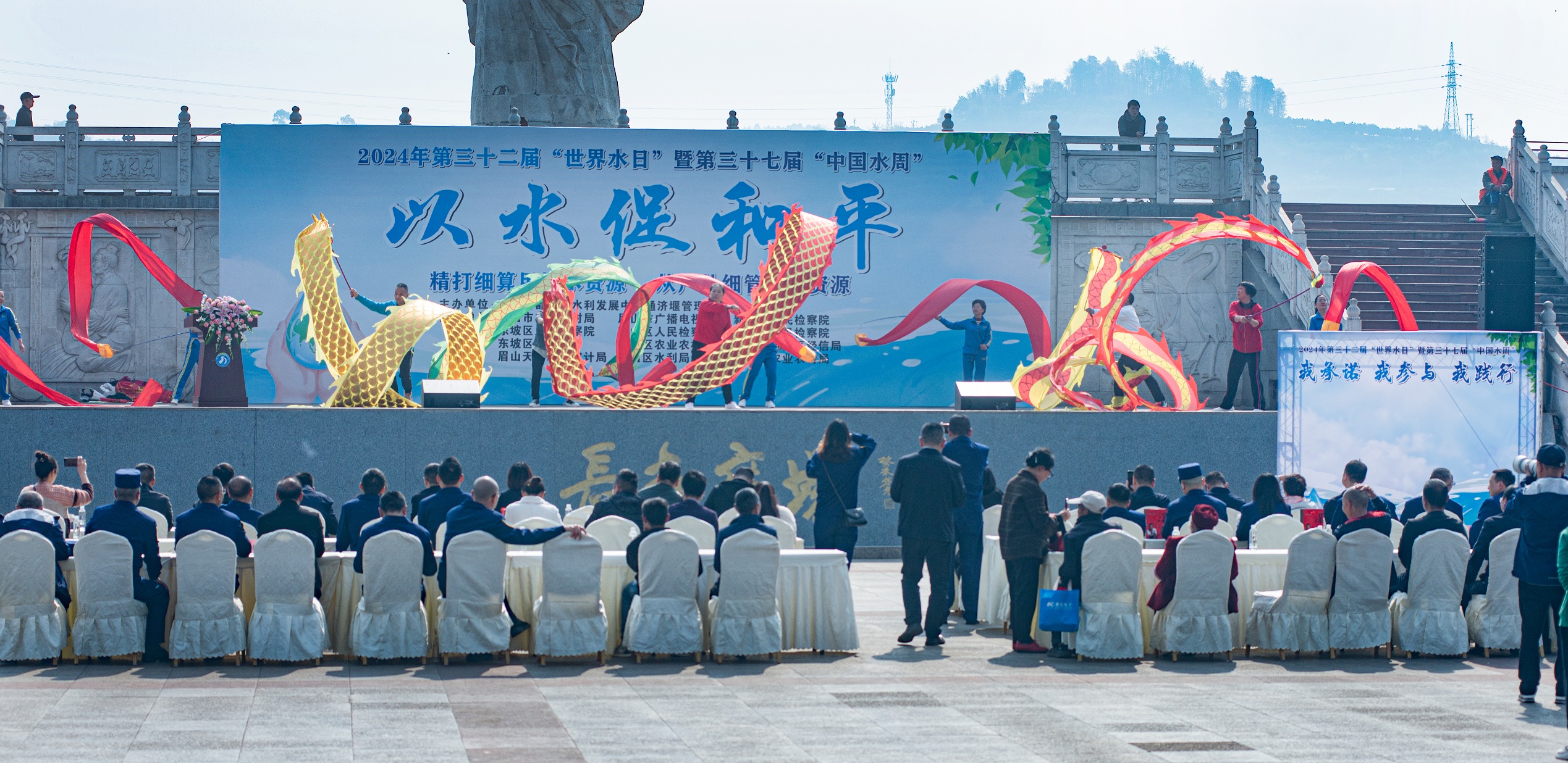3月22日,通济堰管理处联合灌区检察机关、灌区水系责任单位、眉山市广播电视台在眉山市彭山区彭祖广场开展了集中宣传活动。活动现场,通过悬挂标语、设立宣传展板、设置宣传点位、文艺表演、水资源知识竞答、倡议保护水资源、践行绿色发展理念,“我承诺、我参与、我践行”等丰富多样的活动形式,充分调动了现场氛围,吸引了广大灌区群众参与到活动中。在宣传点位前,站满了前来了解咨询的群众,工作人员耐心地向大家讲解节水知识、宣传并发放《四川省水资源调度管理办法》、《长江保护法》、《四川省河湖长条例》、《四川省都江堰水利工程管理条例》等宣传资料和文创产品。