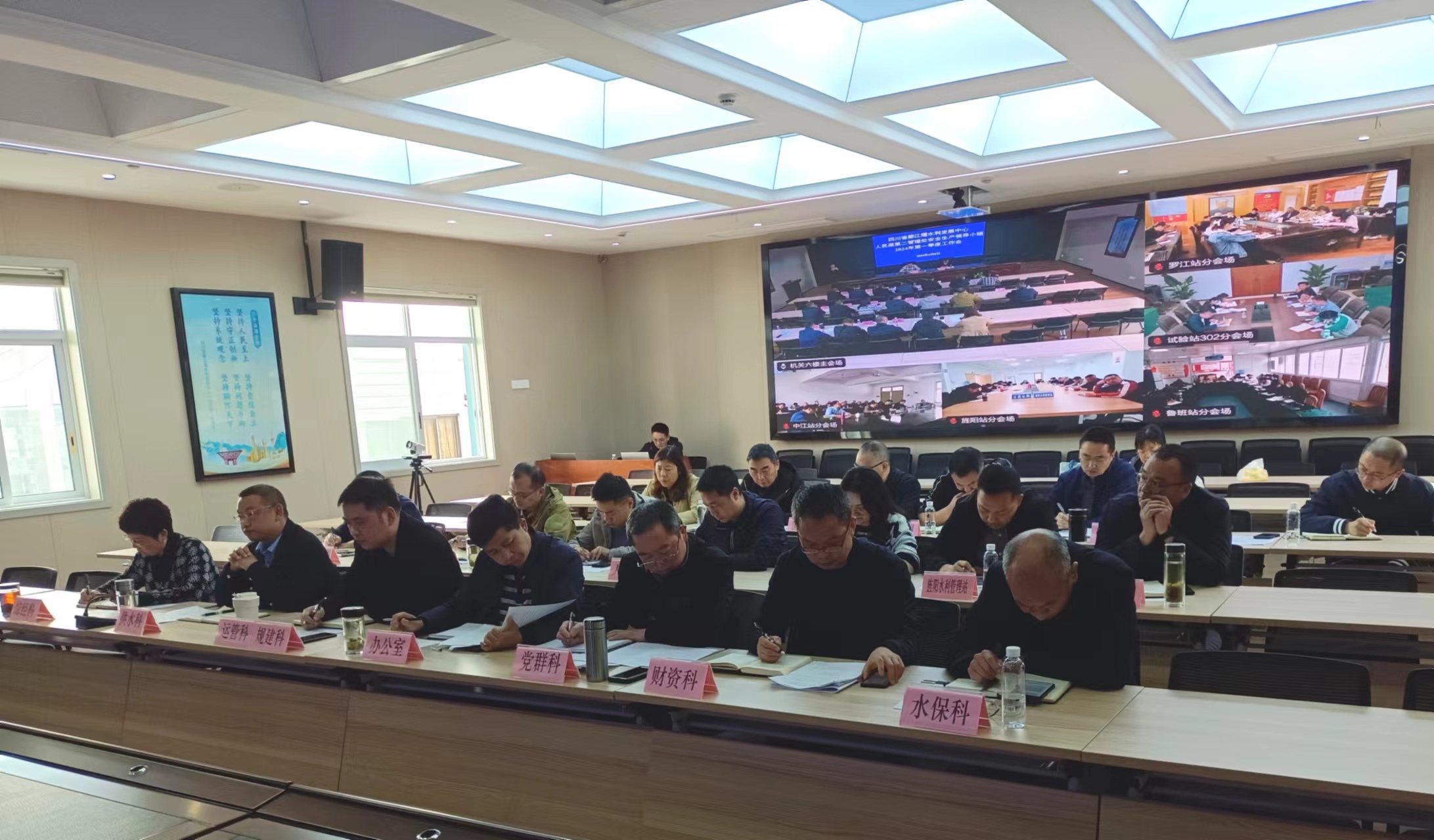 在家处领导,机关各科室、各基层单位负责人在主会场参加会议,各基层单位有关人员分别在分会场参加会议。(供稿:人民渠第二管理处)