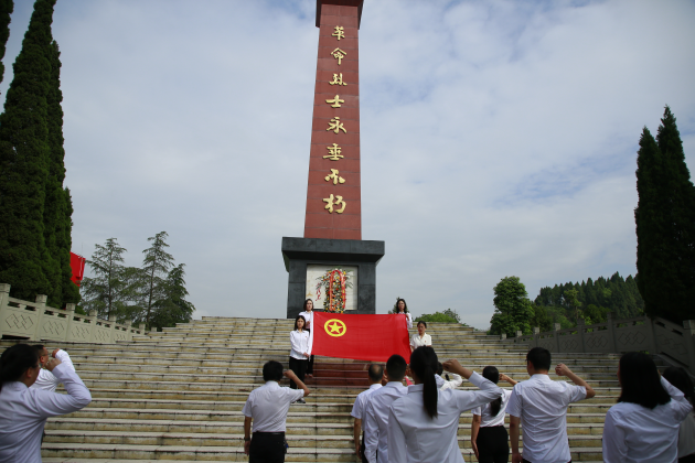 在仁寿县烈士陵园,团员青年在纪念碑前整齐排列,奏唱国歌,面对团旗重温入团誓词,向革命先烈敬献花篮、花束,进行红色家书诵读,用铿锵有力的声音深切缅怀革命先烈,厚植家国情怀。在讲解员带领下,团员青年参观纪念馆,聆听红色故事,感悟革命历程和优良传统。在薪火呈炬红色藏品展览馆,依次展示着红军长征、抗日战争、抗美援朝等时期的100余种共计1万余件红色真实老藏品,展馆负责人向团员青年分享老藏品背后的故事,以修建黑龙滩水利战士的身份向团员青年讲述了战天斗地的水库修建历程。在浓厚氛围中,大家齐声高唱《没有共产党就没有新中国》,矢志赓续传承无私奉献的革命精神。