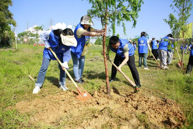 当今时代,绿色成为新时代中国的鲜明底色,绿色发展成为中国式现代化的显著特征。黑龙滩管理处团员青年坚定践行“绿水青山就是金山银山”理念,积极响应号召,节水护水、植绿护绿。团员青年们分别在黑龙滩水库肖家坡、邱家堰区域部分消落带参加义务植树,大家手持铁锹、锄头,扶树填土,相互协作、有条不紊,经过一上午的辛勤劳动,新栽种的100余株水杉、落羽杉迎风伫立、一片生机,灌区水生态涵养保护见行见效。