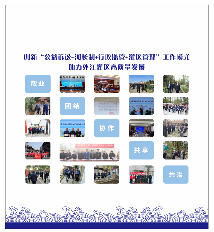 据悉,2022年11月四川省检察院与四川省水利厅签约共建都江堰灌区水利保护公益诉讼示范区,成为全国大型灌区第一列,被最高人民检察院誉为“四川经验”。两年来,双方在联席会议、线索互移、联合巡河等工作机制保障下,围绕灌区水资源、水生态、水环境、水利工程及文化遗产保护等重点内容,持续深化水利保护公益诉讼工作,发出公益诉讼风险提示函2份、检察建议1份、移交线索2件,成功处置多起涉水事件,为打造生态灌区提供了坚实法治保障。(供稿:外江管理处)