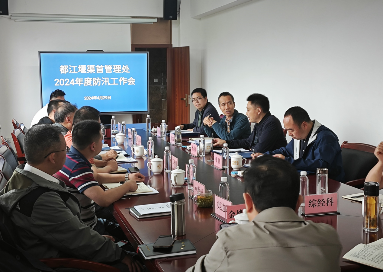 会议首先传达了《都江堰渠首管理处关于做好都江堰渠首2024年水旱灾害防御工作的通知》精神;从汛前检查情况通报、前期工作开展情况和2024年水旱灾害工作安排等方面作了工作报告;中心运管处副处长金汉林代表中心防办就建立工作机制、隐患排除整改、在建工程安全度汛和防汛物质贮备等方面提出了具体要求。