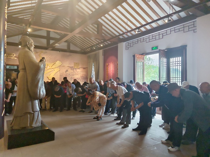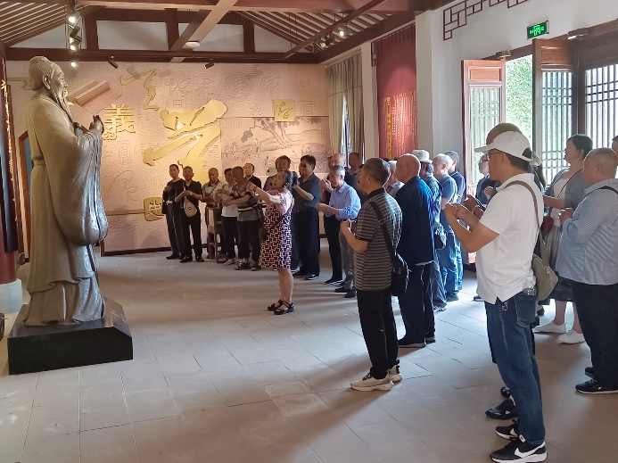 在廖平经学堂,老同志们学习了传统礼仪文化——行孔子拱手礼;讲解员又从廖平世家、廖平小传、学术成就、师友讲习、影响与评价五个篇章内容对廖平先生如何成为一代经学大师不平凡的一生进行详细解读。大家通过学习传统礼仪、聆听一段段故事,观看一件件实物,学习了儒家经典以及中国传统文化,感受了国学经典的魅力,增强了文化自信。
