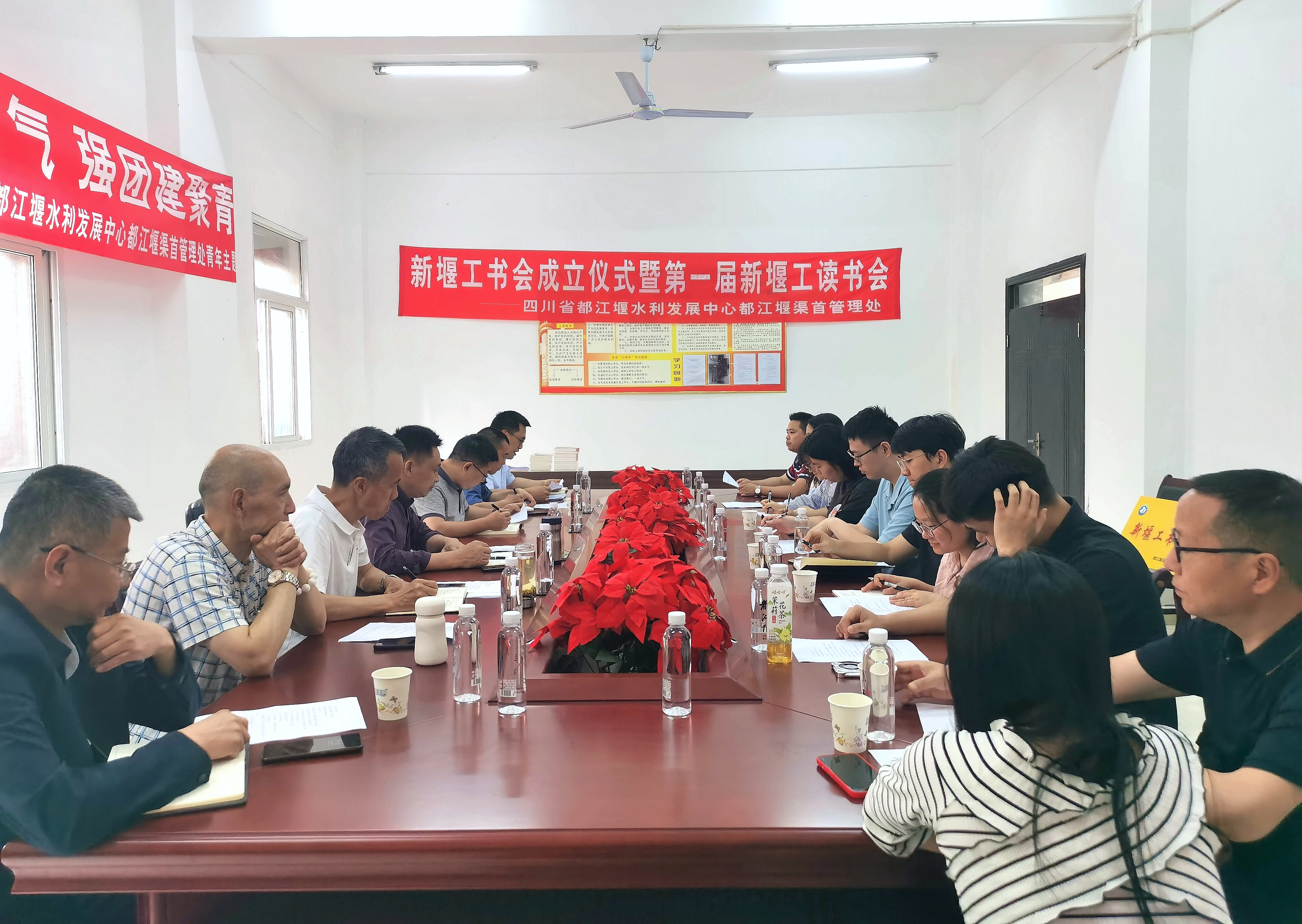 新堰工书会旨在搭平台、造氛围,引导职工树立正确的阅读观念,深入学习都江堰历史文化和新时代治水理论,激发创新思维,全面丰富和提升青年干部理论水平和文化修养。依托都江堰深厚的文化底蕴成立的都江堰水文化宣讲队,以青年职工为主,旨在通过宣传宣讲的方式,传播都江堰声音,传承发扬都江堰文化、李冰文化、治水文化,持续增强都江堰水文化影响力。