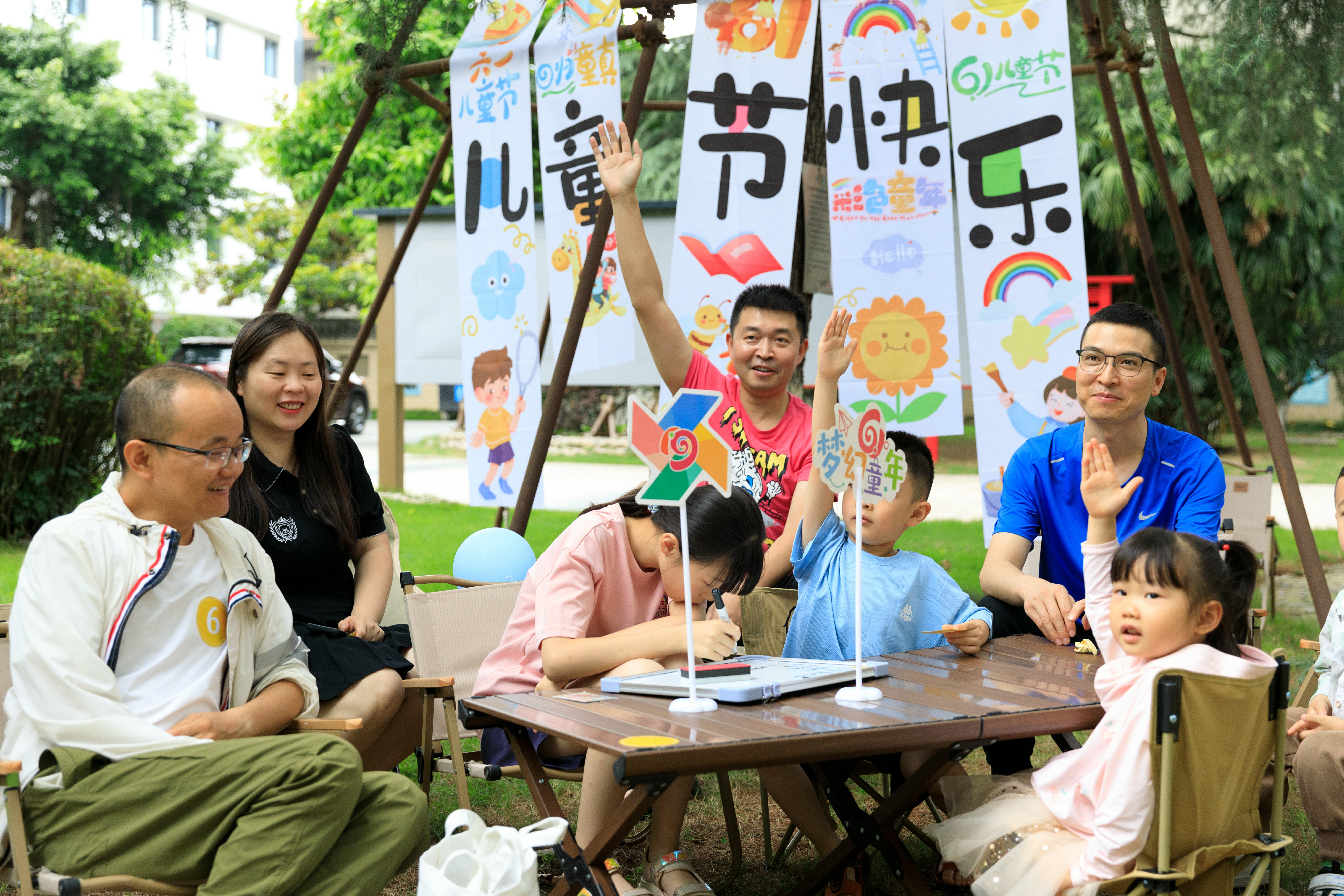 “森林”中,一场以中华文化知识为主题的创意知识竞答拉开活动序幕,迅速引爆全场。家长们这群“超龄小盆友”暂时放下繁忙的工作,和孩子们共同开启通往快乐的童年大门。