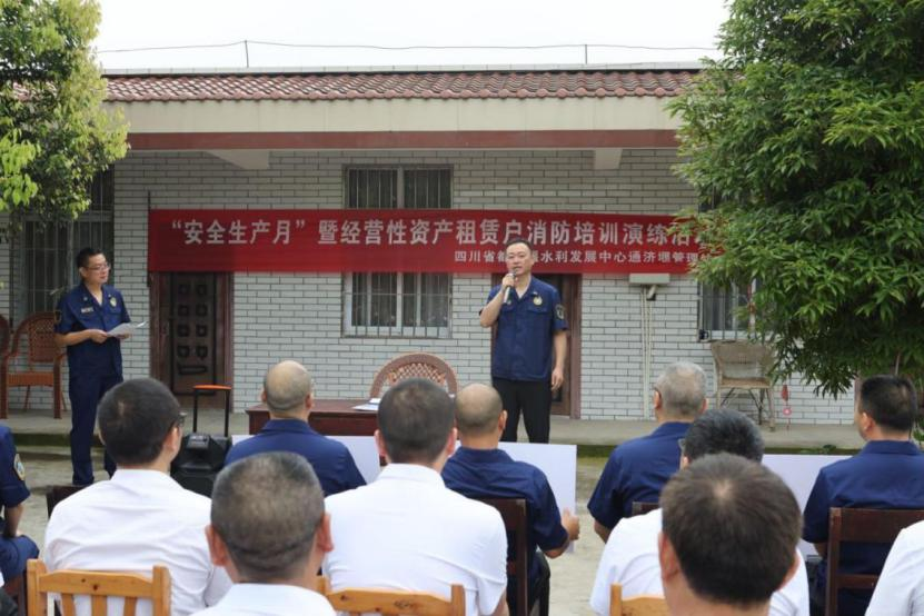 6月18日,通济堰管理处以“个个讲安全,人人会应急——畅通生命通道”为主题,在东坡水利管理站开展水利安全月暨经营性资产租赁户消防培训演练活动。