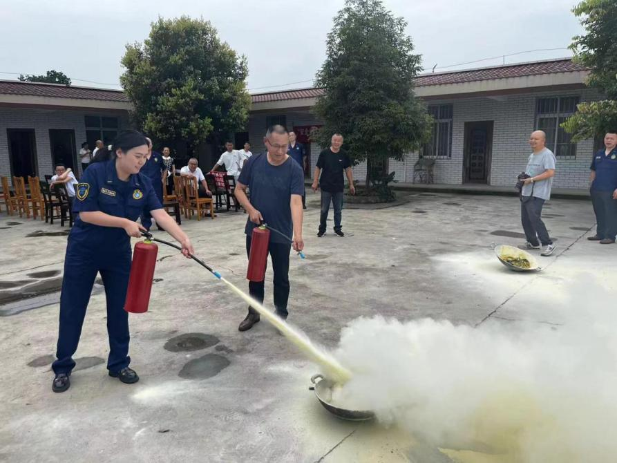 演练前,通济堰管理处安全监督科负责人讲解了初期火灾处置、烧伤急救、心肺复苏步骤等安全急救知识,通过生动有趣的讲解,提高干部职工和经营性资产承租户的安全意识,有效普及火灾常识;东坡水利管理站安全员现场讲解灭火器构造和使用,并模拟初期火灾事故现场,现场检验学习效果。在安全员的指导下,大家严格按照消防安全处置程序有序进行,通过“一提二拉三握四喷”步骤,实际操作使用干粉灭火器迅速扑灭火情,防止火势进一步扩大。