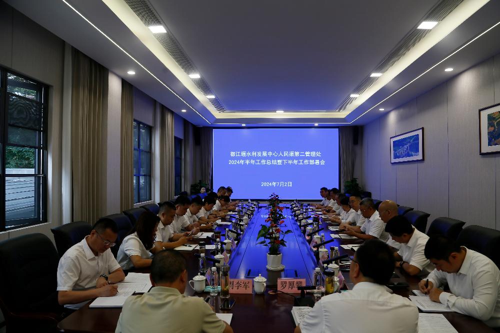 为有效总结上半年工作,扎实推进下半年各项重点工作有序、有力、有效开展,7月2日,都江堰水利发展中心人民渠第二管理处召开2024年半年工作总结暨下半年工作部署会。在家处领导、机关各科室、基层各单位负责人参加会议。党委书记、处长罗厚攀主持会议。