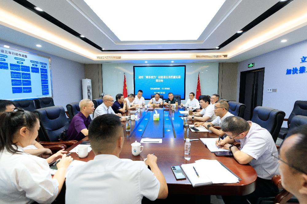 杨斌对外江管理处的到来表示欢迎并就开展党纪学习教育作了讲话。他指出,两家单位很有渊源。东风渠原名为东山灌溉渠,外江处原名为西河管理处,从地理方位来看,一个在东、一个在西;从用水方式来看,一个“引水上山”、一个“汇水入河”;从灌区定位来看,一个是“主力军”,一个是“排头兵”。在推动灌区一体化高质量发展的新征程中,两家单位要赓续传统友谊,在双方各自擅长领域深化交流合作,互学互鉴互促。特别是要以党纪学习教育为契机,要深刻领悟开展党纪学习教育的重大意义、深刻把握党纪学习教育的重点、注重提升党纪学习教育工作质效,以坚实的作风纪律保障共同为推动灌区高质量发展贡献积极力量。