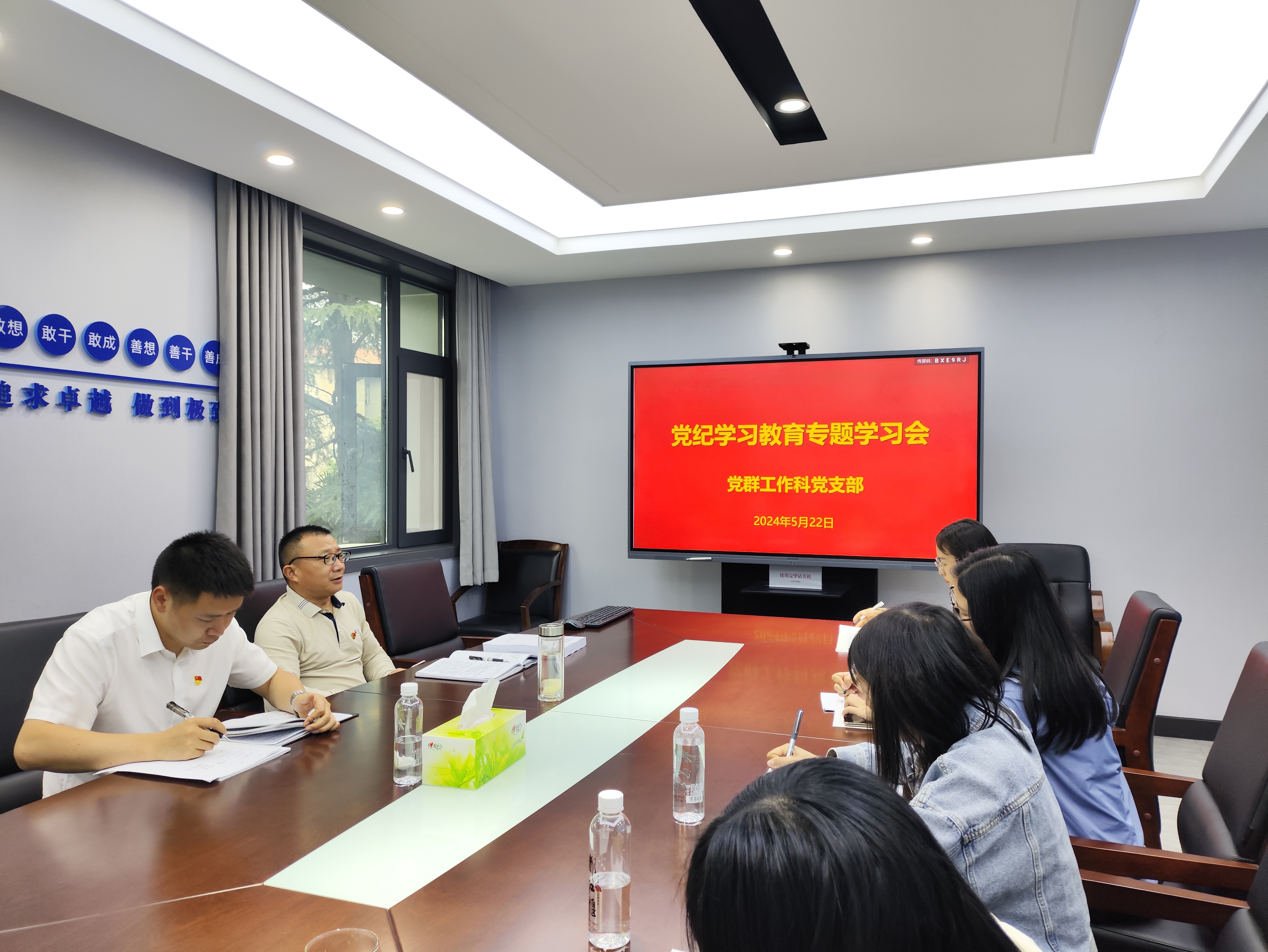 自4月17日党纪学习教育启动部署会以来,党群工作科党支部制定了《党群工作科党支部党纪学习教育工作计划》,多次组织党员干部集中学习修订后的《中国共产党纪律处分条例》,并通过开展党支部学习大会、党支部书记讲党课、收看《忏悔实录》《错汇的权与钱》等警示教育片、参观“古堰清风”廉洁文化馆等方式,强化党纪学习教育。同时,组织干部职工开展《中国共产党纪律处分条例》答题活动,参与率达100%,平均分在各党支部名列前茅。下一步,党群工作科党支部将持续学习《中国共产党纪律处分条例》,在深学细照中不断增强学纪知纪明纪守纪的思想自觉、政治自觉、行动自觉。