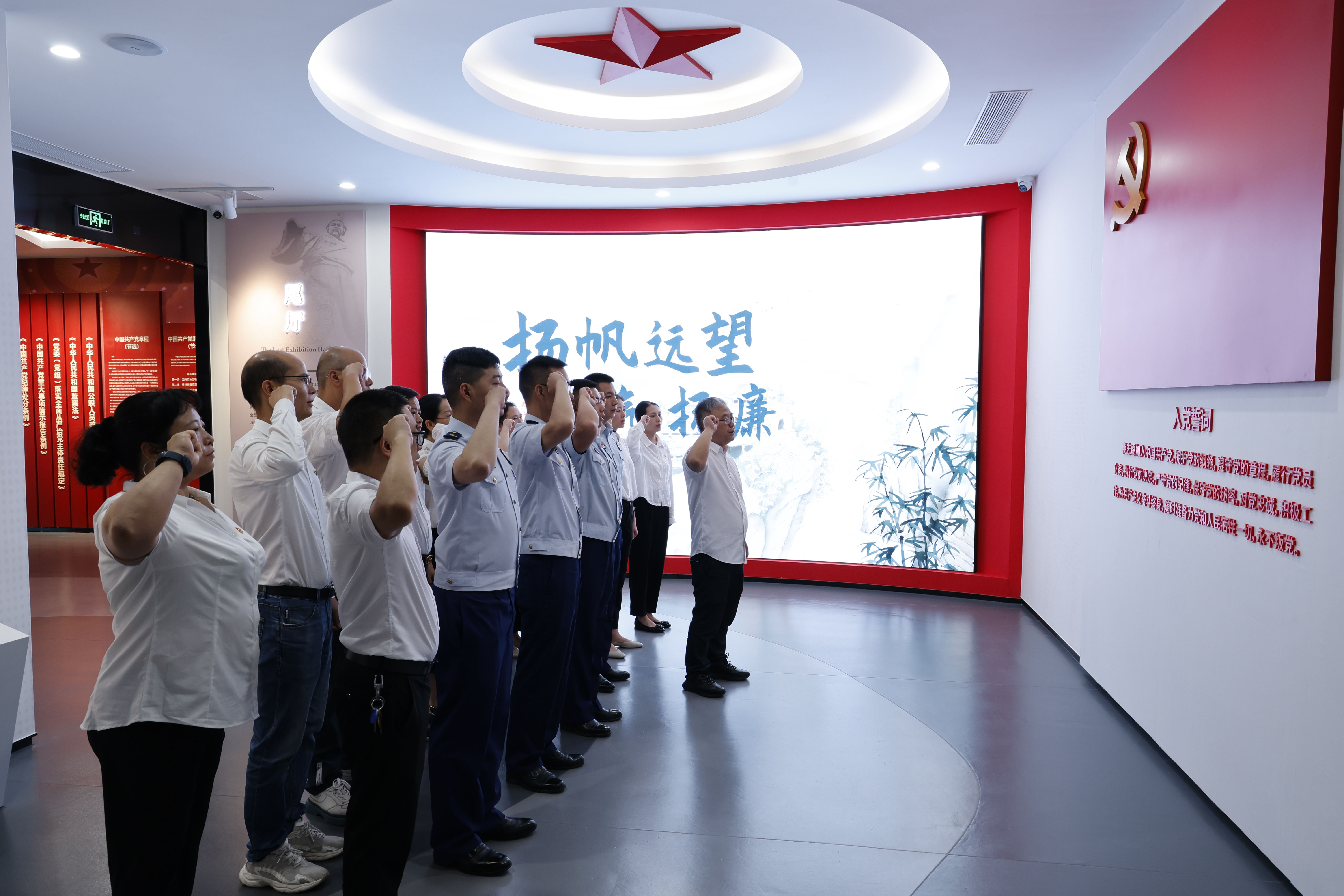 7月19日,全体党员参观了“古堰清风”廉洁文化馆。讲解员为大家介绍了馆内陈列的文物、图片和资料,讲述了水利行业廉洁自律的故事以及典型腐败案例。随后,全体党员重温入党誓词。