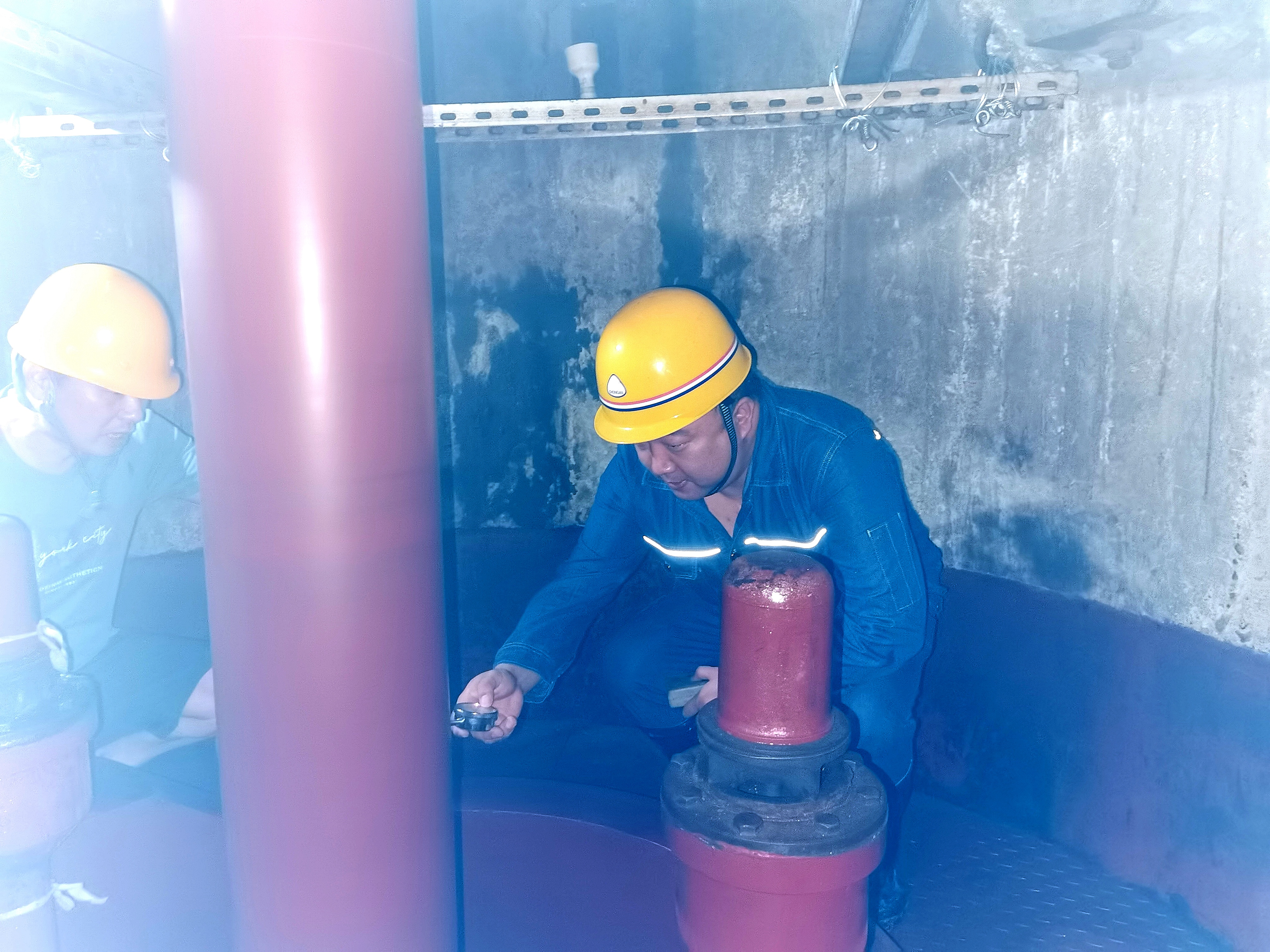 7月24日凌晨,刘大伟已完成值守交接工作,本应在家休息的他,突然接到暴雨红色预警信息及防汛应急Ⅳ级响应。作为电厂防汛队员,他立即奔赴现场集结,对厂房内漏雨点进行检查防范,及时采取措施避免设备受损。同时,严格落实上级防汛部署要求,根据雨情和上游来水情况,按照指令开展开闸泄洪。泄洪过程中,需每小时对有无漂浮物阻碍行洪通道,泄洪设施运行状态是否良好,以及河道水位变化对下游河床有无破坏等情况进行逐一检查,防洪安全容不得他有半点马虎。
