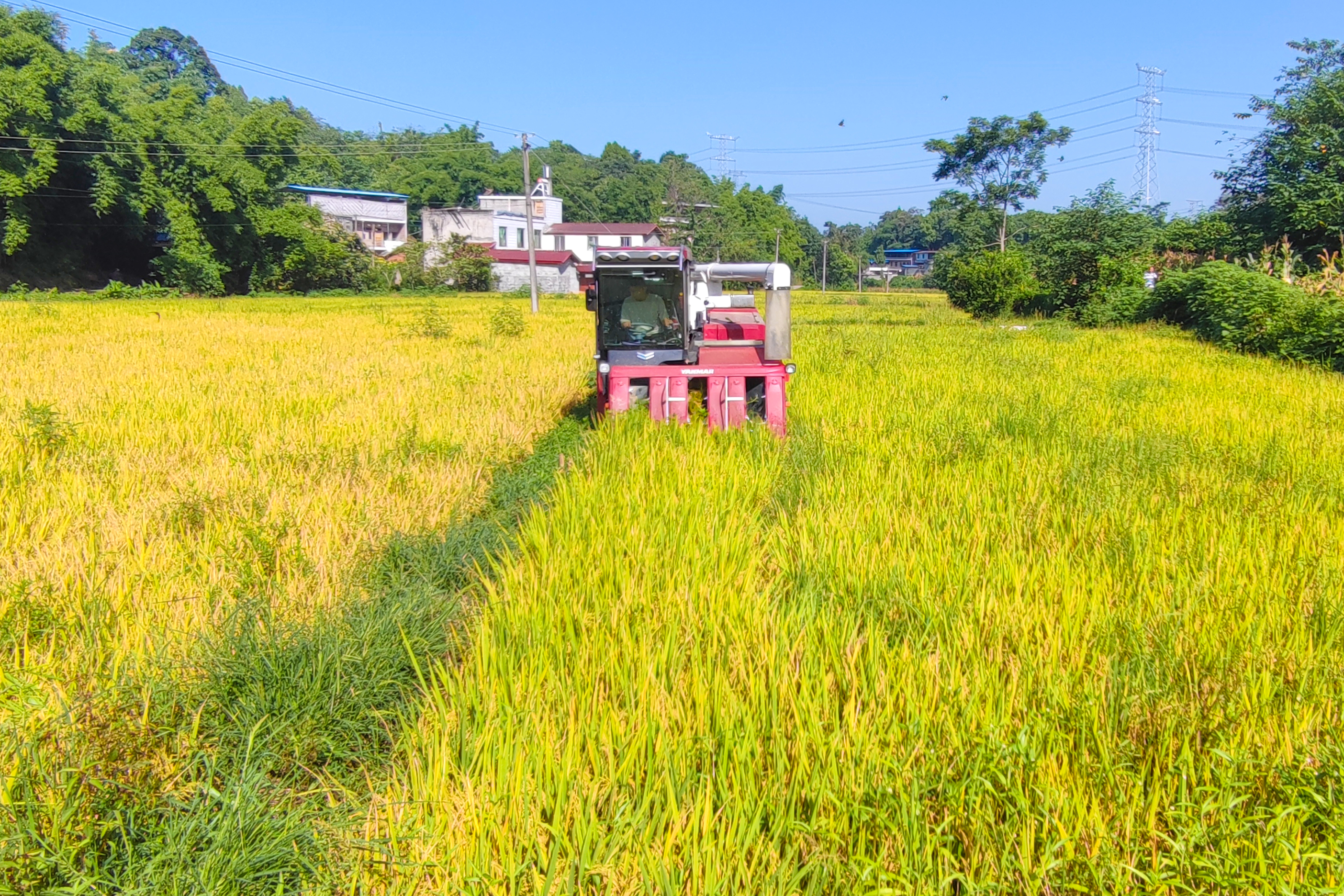 片片金色田野,阵阵稻花飘香。位于黑龙滩灌区内的宝飞镇尖石村高标准水稻田收割现场,一行行沉甸甸的稻穗,好像在诉说着一个关于丰收的故事。收割机在田间来回穿梭,将成熟的稻穗卷入“腹”中,脱粒、粉碎一气呵成,不一会儿,颗粒饱满、色泽金黄的水稻就从收割机里倾泻而出,很快装满运粮车,准备运往晒场。