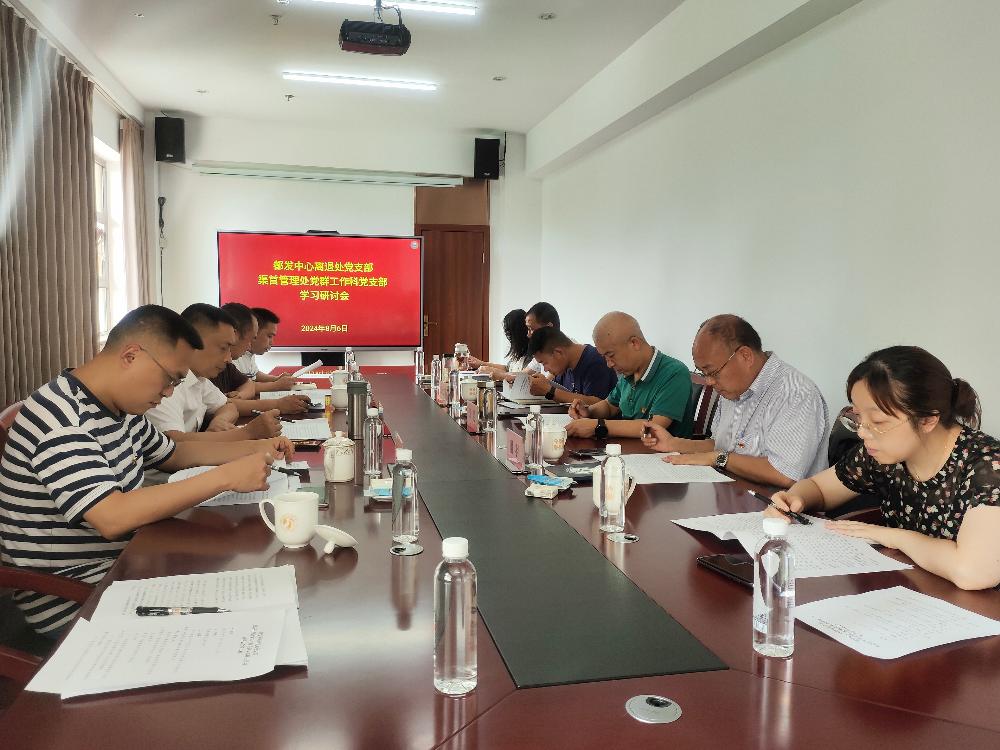 8月6日,离退休人员工作处党支部、都江堰渠首管理处党群工作科党支部联合开展学习研讨会。中心党委委员、工会主席朱是参与讨论并作讲话。
