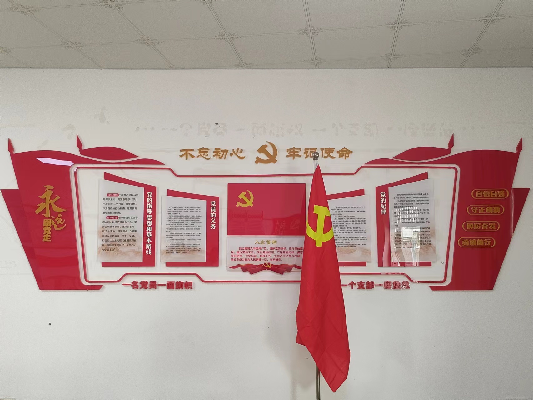 为切实抓好党建引领,黑龙滩管理处高度重视黑龙滩水库大坝除险加固工程党员活动室的建设,本着“规范化、标准化”为目标,坚持“规范、节约、实用”的原则,严格按照中心党委“完善功能、一室多用”要求,落实“七有”标准,把党员活动室真正建成党员政治学习的中心、思想教育的阵地、传授知识的课堂、议事参政的场所、宣传党建文化的窗口、增强党员的认同感和归属感,充分发挥基层党组织战斗堡垒和参建党员的先锋模范作用,引领水利建设者进一步发扬“三敢三善”精神,勇创时代精品,为新时代四川经济社会高质量发展做出更大贡献。