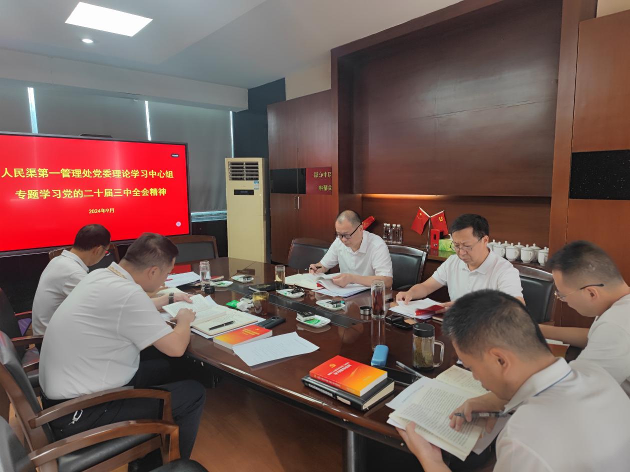 9月13日,人民渠第一管理处召开党委理论学习中心组会议,深入学习贯彻党的二十届三中全会精神。党委书记、处长周宗剑主持会议。