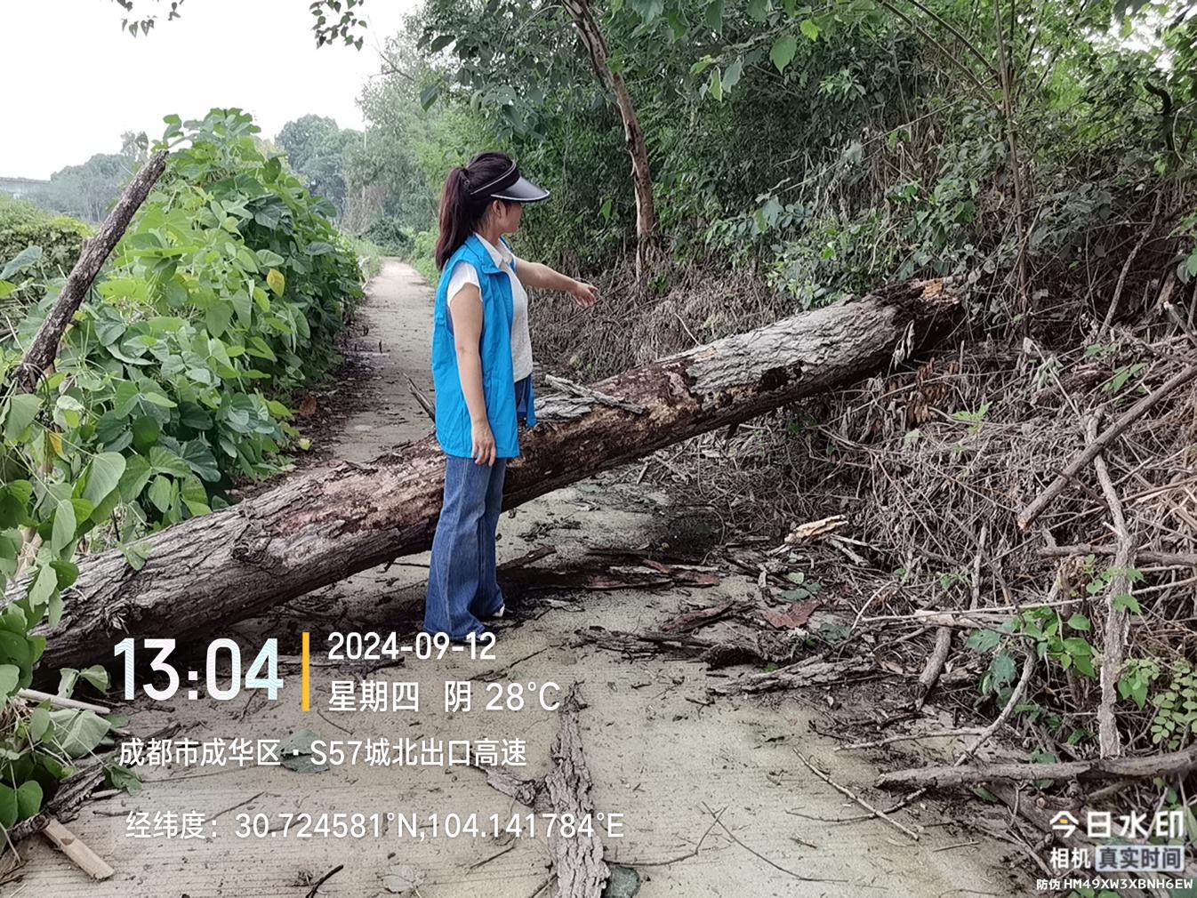 近日,东风渠灌区成华区民间河长黄敏开展雨后巡河时发现,多棵树木倒伏在东风渠北干渠K1+100右岸渠堤,有随时倾倒进入渠道的风险,存在严重的安全隐患。黄敏第一时间联系了东风渠管理处成华水利管理站和白莲池街道,成华水利管理站赓即启动应急抢险程序,组织人员对倒伏树木进行清理,保障渠道安全运行。