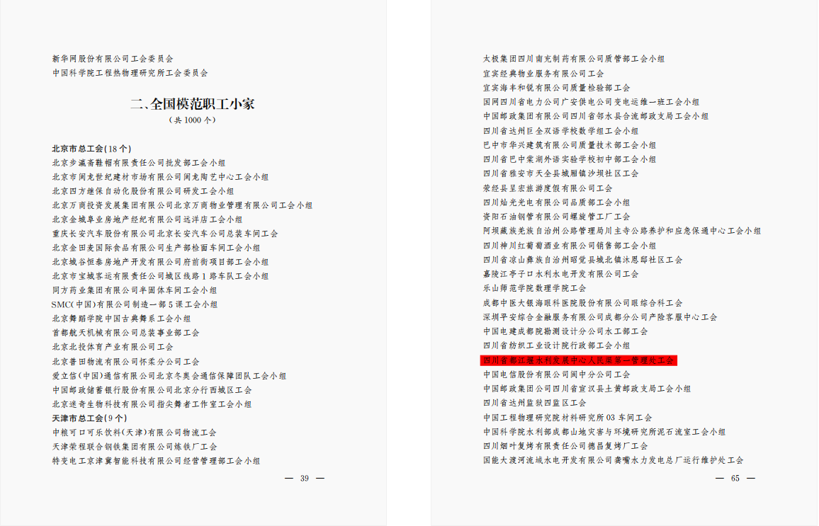 近日,中华全国总工会发布《关于表彰全国模范职工之家 全国模范职工小家 全国优秀工会工作者的决定》,都江堰水利发展中心人民渠第一管理处工会荣获“全国模范职工小家”称号。