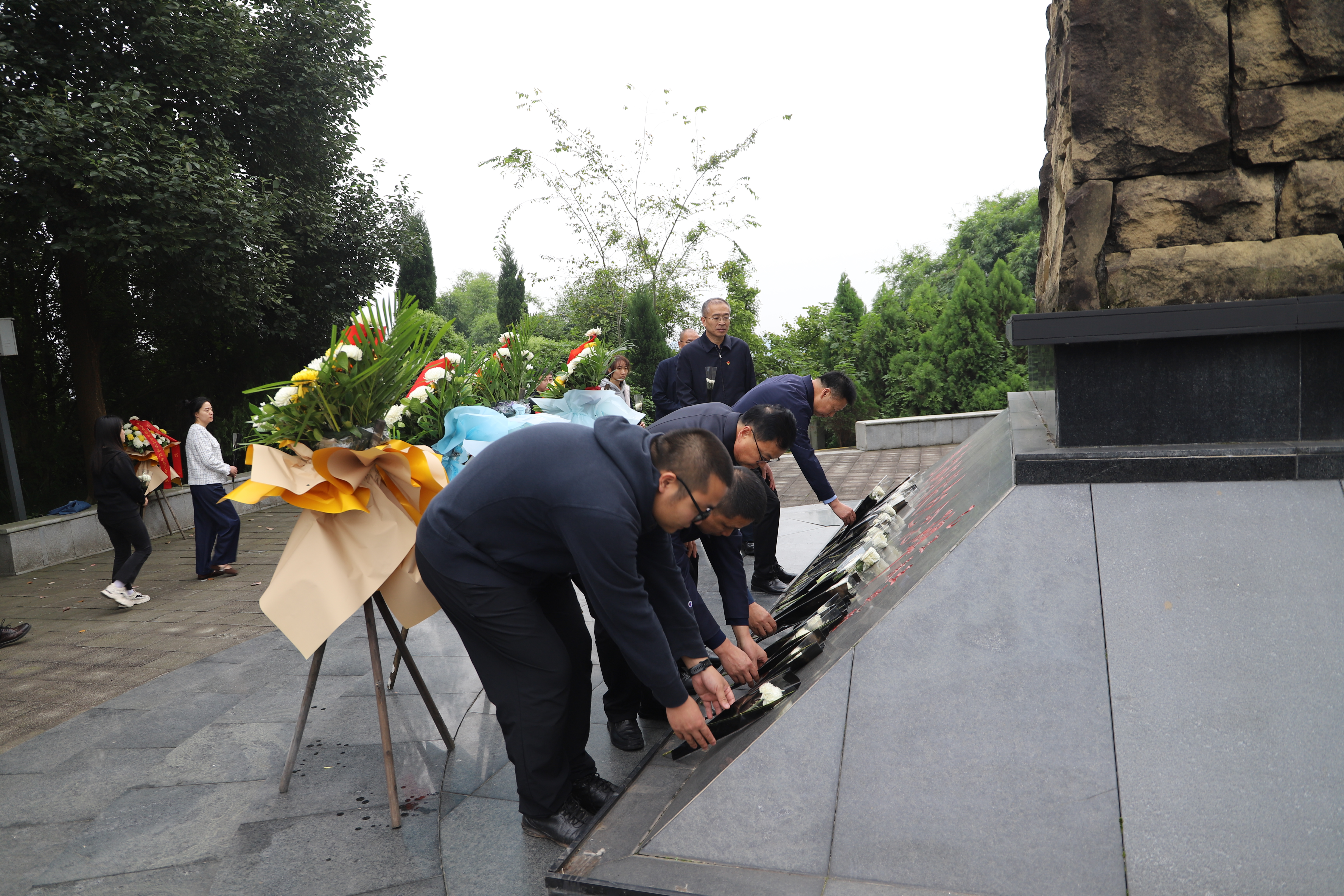 随后,全体人员来到成都战役烈士陵园,共同缅怀长眠于此的革命烈士。在庄严肃穆的烈士纪念碑前,大家整齐列队,奏唱国歌,向革命先烈默哀致敬,并敬献鲜花。
