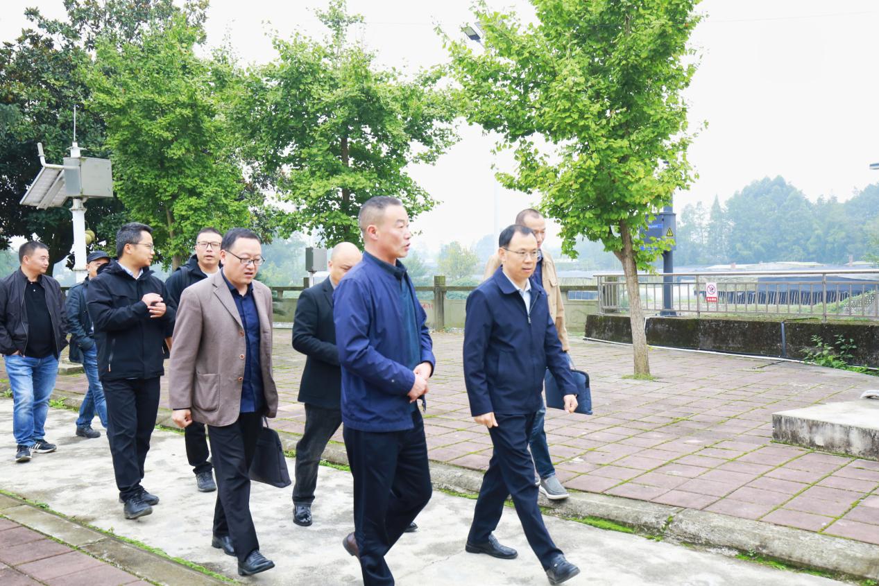 童宗明、谢洪波一行实地参观了人民渠第一管理处什邡水利管理站慈母山枢纽,现场察看水闸枢纽设施设备运行保养和园区管理情况,详细了解管理站人员结构及配置、水利工程运行情况和管养分离试点工作的实际操作模式。
