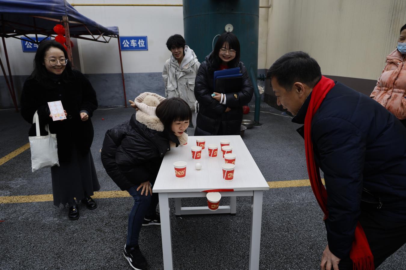 新春游园环节,设置了写福字、抢板凳、夹弹珠、投壶、吹乒乓球、夹气球跑、蒙眼敲鼓、蒙眼踏步、你划我猜等多个游戏项目,每个片区的游戏点位前都排起长队,干部职工流连忘返,在活动中尽享乐趣,赢取丰厚奖品,在欢乐和喜悦中迎接幸福新年。
