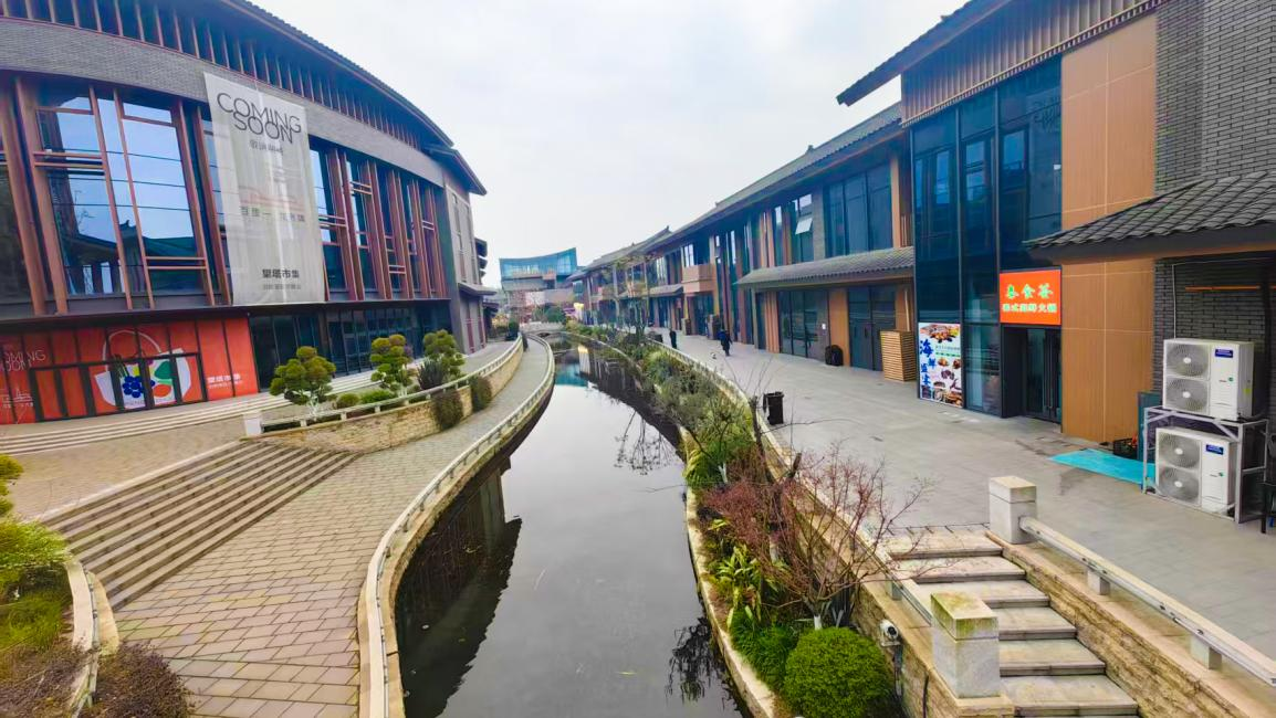 据了解,彭州市龙兴寺历史文化特色街区坐落于彭州市城北核心区,以千年古刹龙兴寺为文化地标,打造了“百里一·龙兴集”特色商业综合体。该街区水系绵延1.5公里,沿岸分布步行街与文化建筑群,水域面积约28亩,年景观用水需求达40万立方米,由人民渠干渠实施供水,是彭州市重要的生态景观工程。引水入城工程不仅显著提升人居环境品质,更通过开放式公共空间设计凸显公益属性。