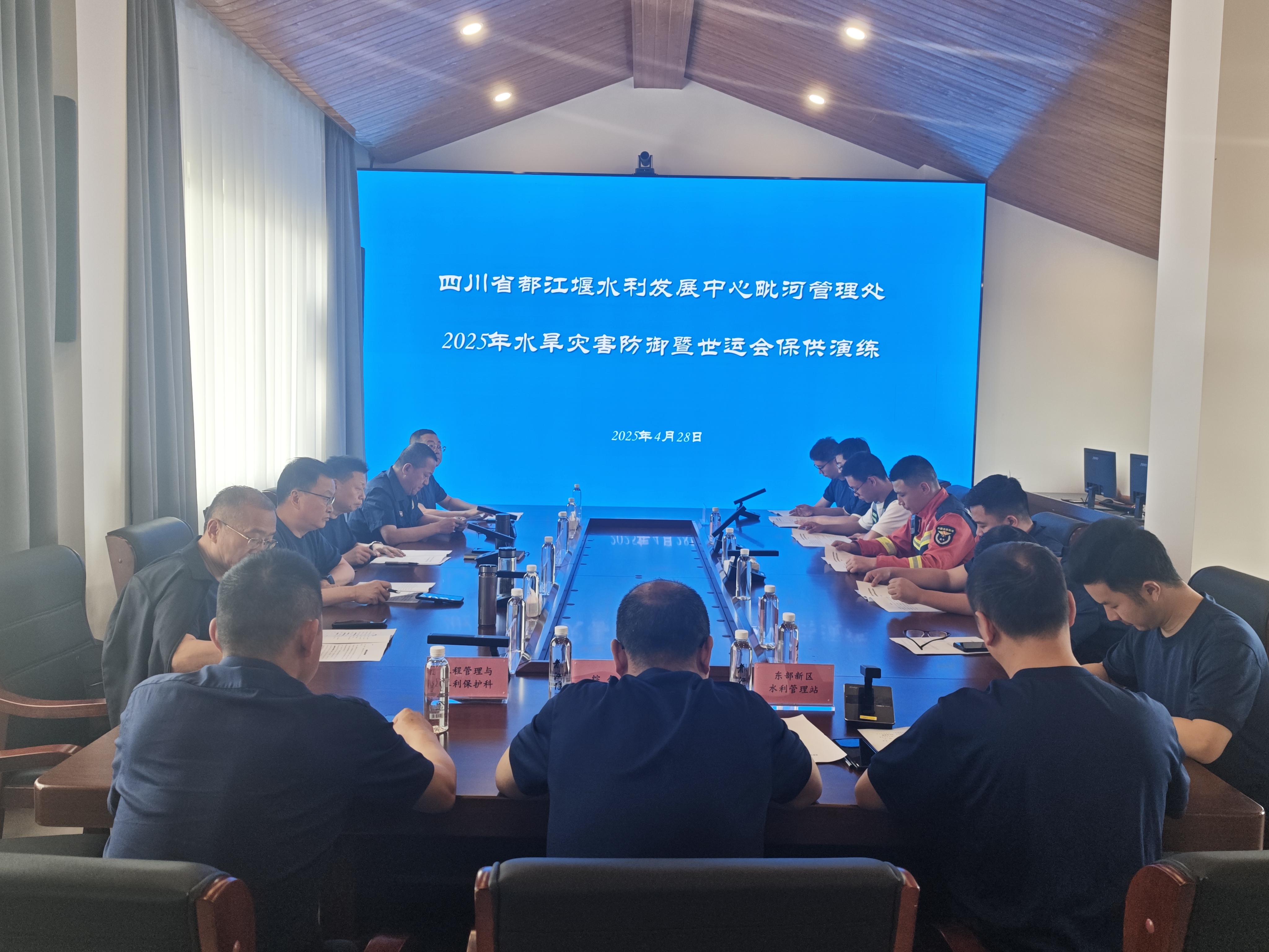 “报告指挥长,刚收到东部新区水利管理站报告,东部新区及上游普降暴雨且仍在持续,张家岩水库水位已超过警戒水位并不断上涨,请示启动III级应急响应,请指示。”4月28日,省都发中心毗河管理处联合属地政府、消防、应急等部门,开展2025年水旱灾害防御暨世运会保供综合演练。