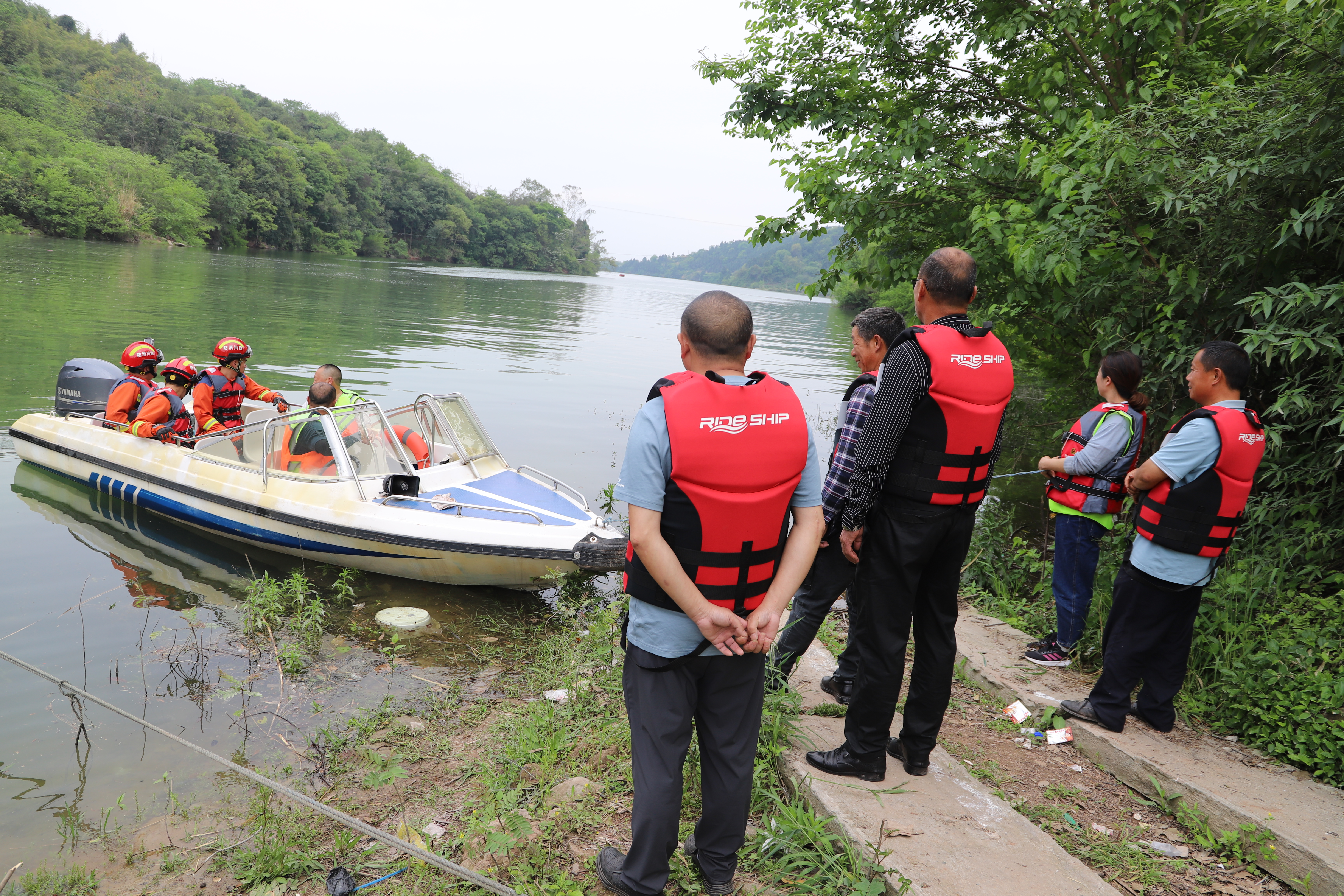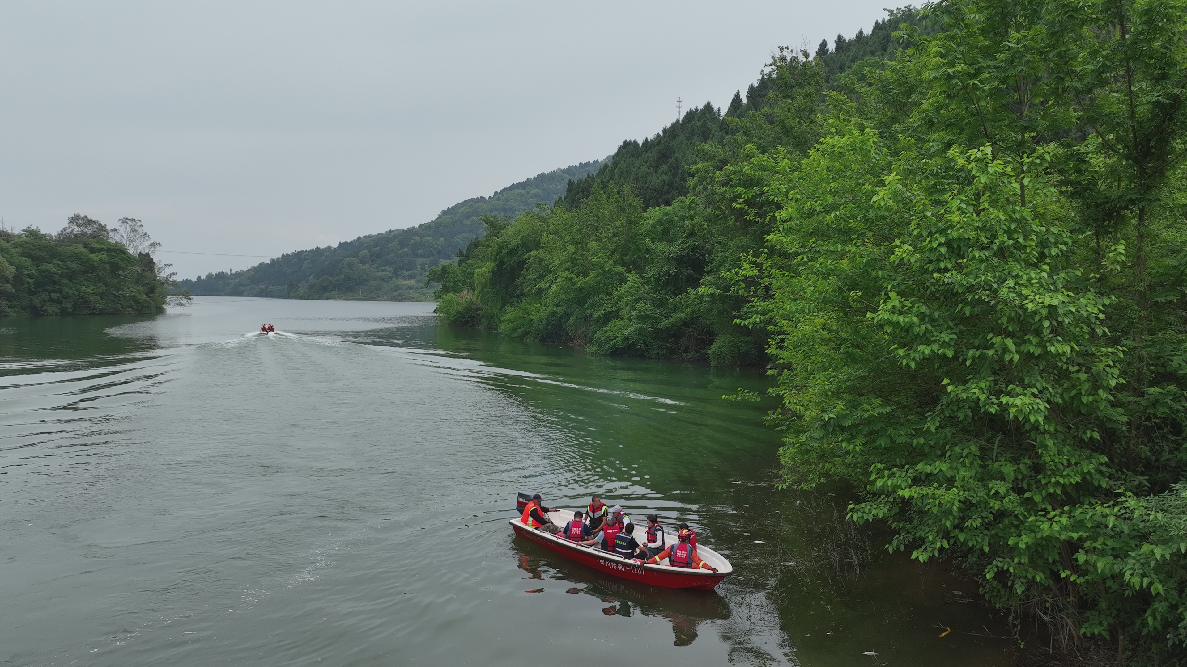 水陆空联动 破解救援难题。张家岩水库开启泄洪闸后,突然接到群众求救电话,水库泄洪前有3户村民撤离后又返回家中取贵重物品,现困于自家房屋内(模拟在小副坝位置进行救援)。毗河管理处立即启动船舶应急预案,联系贾家街道消防中队联合水上救援,“无人机+视频监控”迅速巡查精准确定被困群众位置,10钟内迅速集结救援人员及救生装备出动水库巡查冲锋舟2艘,5分钟被困村民转移至安全区域。