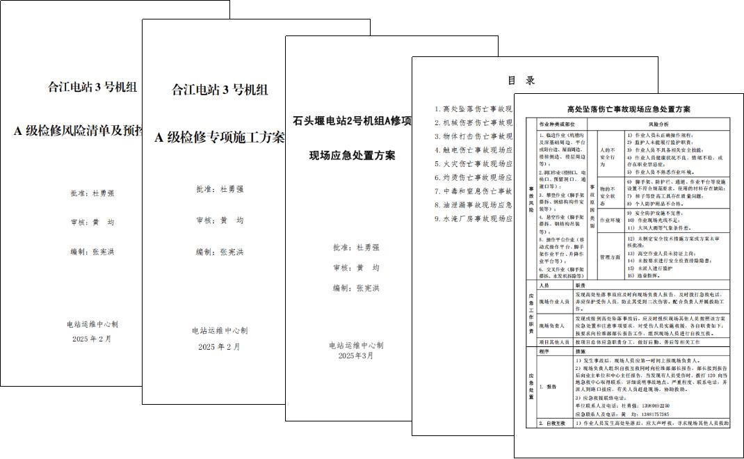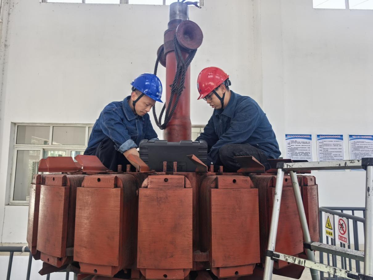 面对7座电站跨区域协同的复杂挑战,检维队以“有章可循、有标可依、有责可追、有效可控”为准则,创新构建“1+3+N”立体化管理架构,以《A级检修标准化作业指导书》为核心,技术攻坚、质量监督、安全保障三组协同,配套10余项应急预案实现“一站一策、一机一案”精准管控。从设备隐患处理到电气二次设备技改,从0.02毫米的工艺红线到“一日三检”(班前风险研判、班中过程管控、班后总结复盘)的流程规范,标准化基因渗透至每个作业环节。截止目前,在45天已完成的检修任务中,团队累计刷新方渡电站2号机组转轮室气蚀修补和空鼓注胶、张家桥电站捞渣机故障修复、石头堰电站A级检修等8个区域检修纪录,设备隐患销号率达100%。