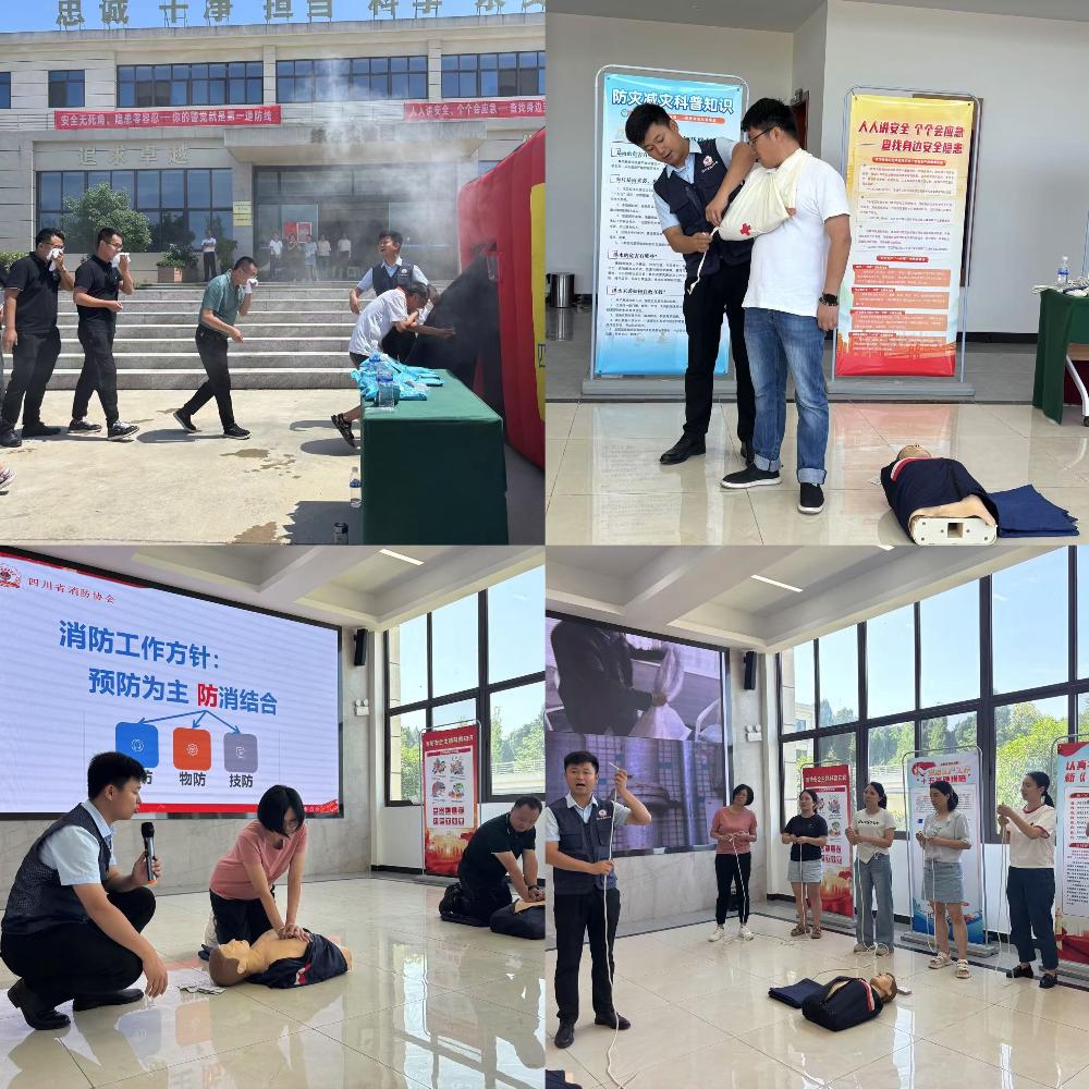 省消防协会科普委主任级讲师详细讲解八字结、多个单结、双平结、坐膝悬垂结等多种绳索打结方式及其在固定、连接、逃生等不同场景的适用要点;系统演示不同部位受伤处三角巾止血包扎具体操作步骤;分步教学心肺复苏步骤,从判断意识和呼吸、胸外按压、开放气道到人工呼吸,强调按压深度、频率及通气量等操作要点;不同灭火器的使用场景等。参演人员积极参与到各项技能的实操演练中,有效提升了在突发安全事件中的自救互救能力。