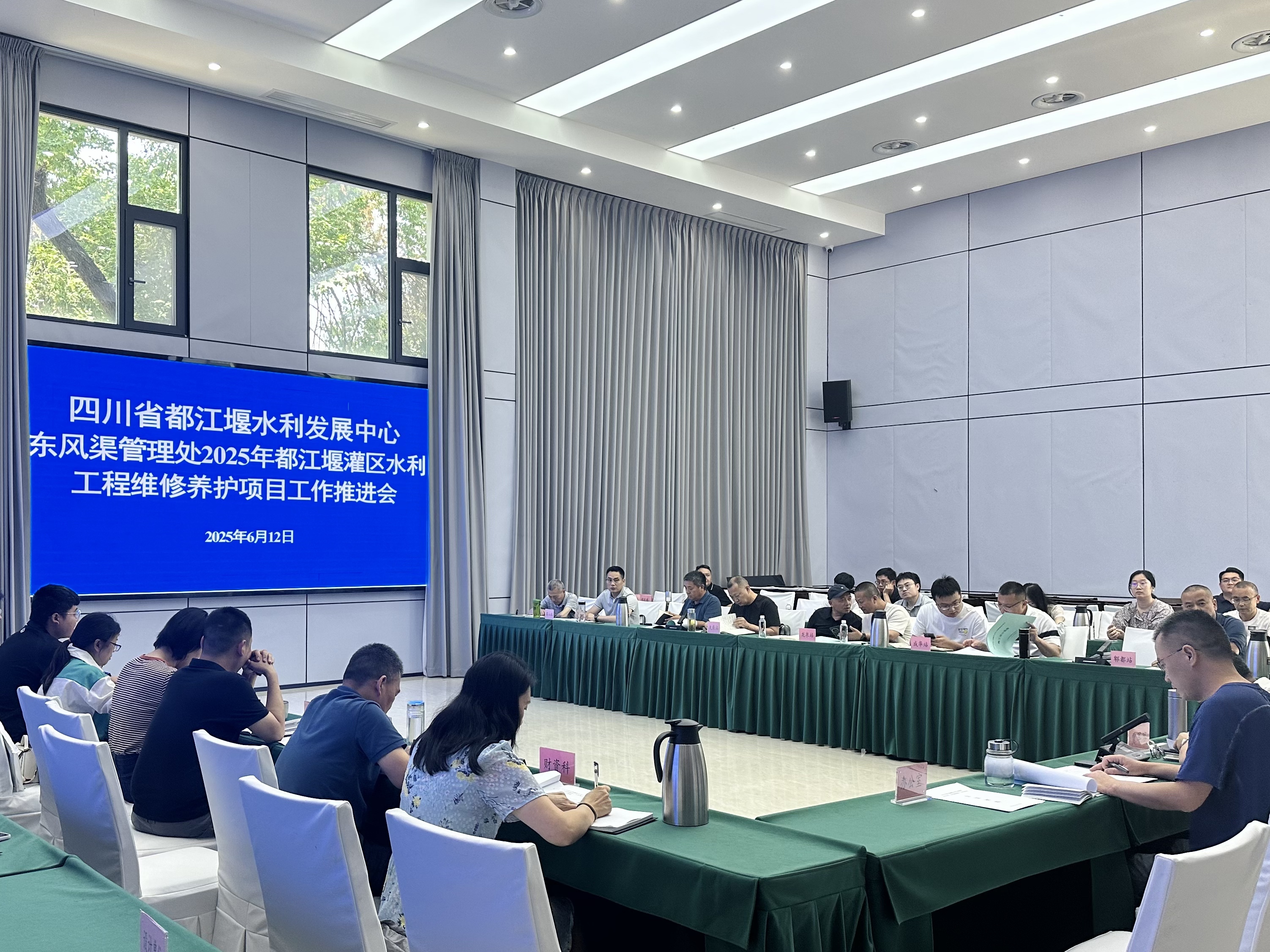 近日,东风渠管理处组织召开2025年都江堰灌区水利工程维修养护项目工作推进会,全面吹响项目建设“冲锋号”。会议围绕项目全流程管理,有序开展基本情况通报、设计技术交底、监理要求明确等议程,为高质量推进项目建设凝聚共识、明确路径。