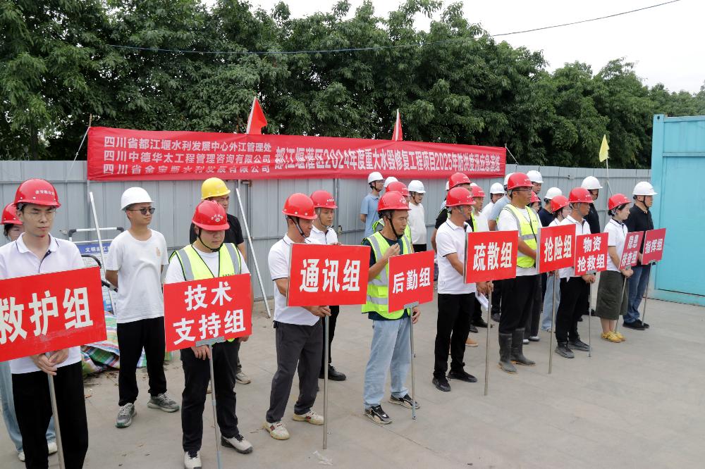 本次演练严格模拟防汛应急IV级响应情景,设置指挥组、通讯保障组、抢险处置组等9个工作组,投入应急力量40余人,调配充足的抢险机械、应急照明及救生装备等物资,完整覆盖监测预警、疏散撤离、应急救援、抢险处置全流程。通过“技防+人防”的融合,高质量完成了各项预设演练任务,为保障都江堰灌区2025年安全度汛构筑了坚实的科技支撑与能力保障。 (供稿:外江管理处)