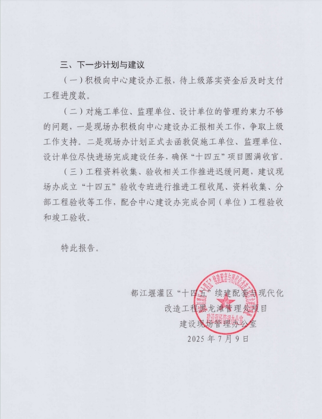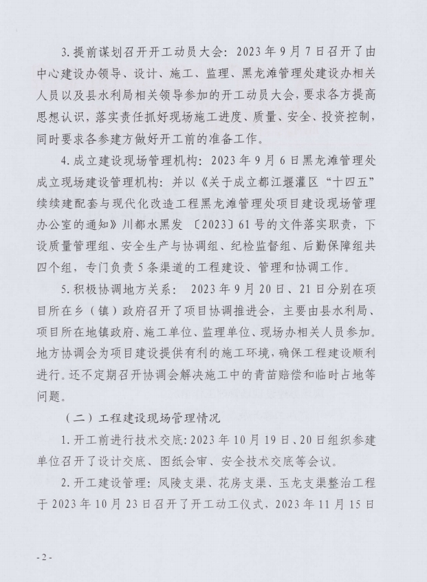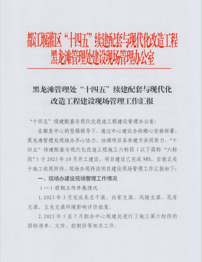 黑龙滩管理处“十四五”续建配套与现代化 改造工程建设现场管理工作汇报