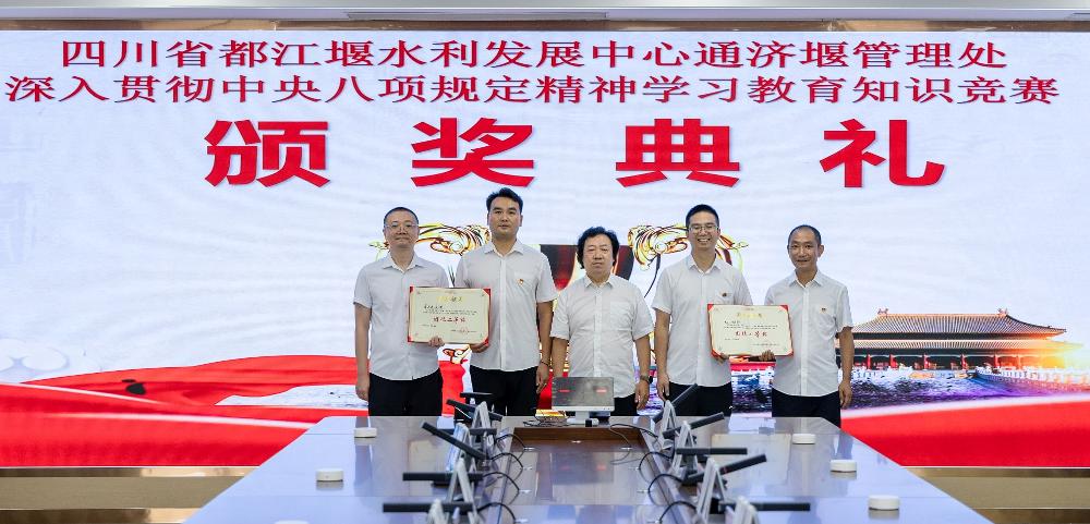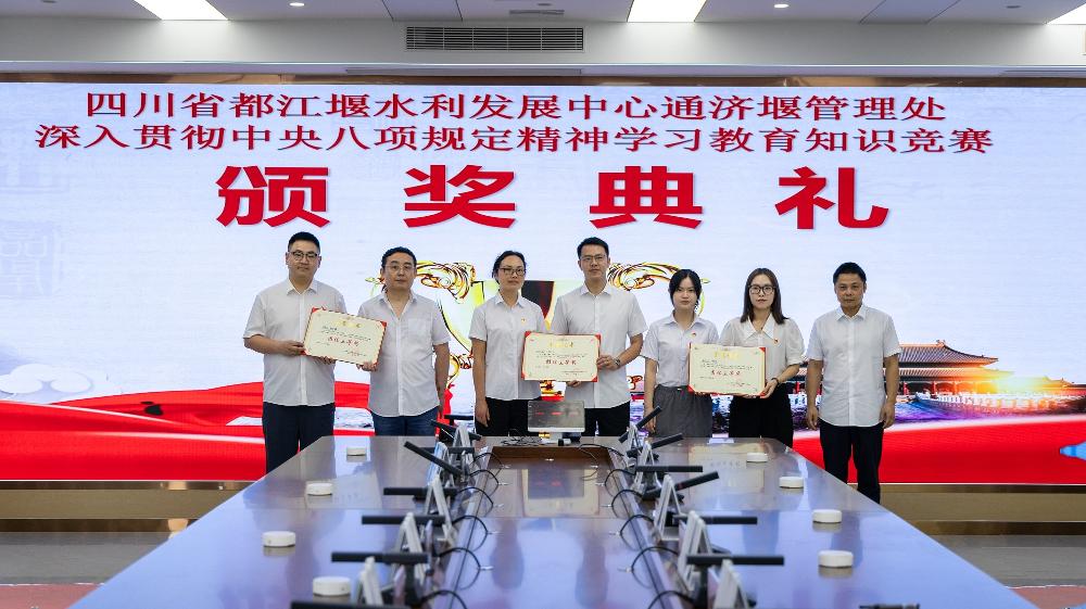 经过激烈角逐,有6支队伍最终脱颖而出,赢得比赛,其中新津站代表队荣获团体一等奖;供水科、东坡站代表队荣获团体二等奖;彭山站、党群科、纪检离退代表队荣获团队三等奖,现场举行了简洁而庄重的颁奖仪式,为获奖队伍颁发了荣誉证书。